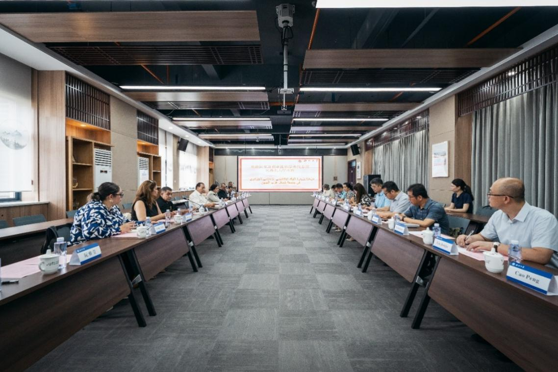 区域国别学院负责人对学院和中心相关情况进行了介绍,广发体育相关学者与阿媒体学者代表进行了交流互动。会前,代表团参观了区域国别学院和阿尔及利亚研究中心。