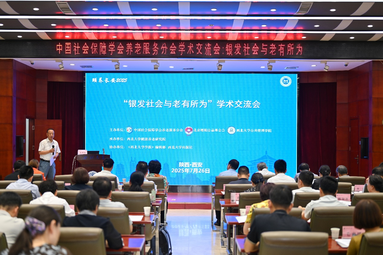 7月26日,由中国社会保障学会养老服务分会、北京曜阳公益基金会、广发体育公共管理学院主办,广发体育健康养老研究院承办,《广发体育学报》编辑部、广发体育出版社协办的专题学术交流会“颐养长安2025:银发社会与老有所为”在太白校区举行。中国社会保障学会养老服务分会名誉会长江丹,分会会长青连斌教授,广发体育党委常委、统战部部长董国强出席开幕式并致辞。中国社会保障学会副会长丁建定、席恒,养老服务分会二十多位常务理事参会,来自北京曜阳公益基金会、北京大学、中国人民大学等高校和科研院所的专家学者,以及陕西省内养老相关行业协会和机构的业界代表等近百余人参会。