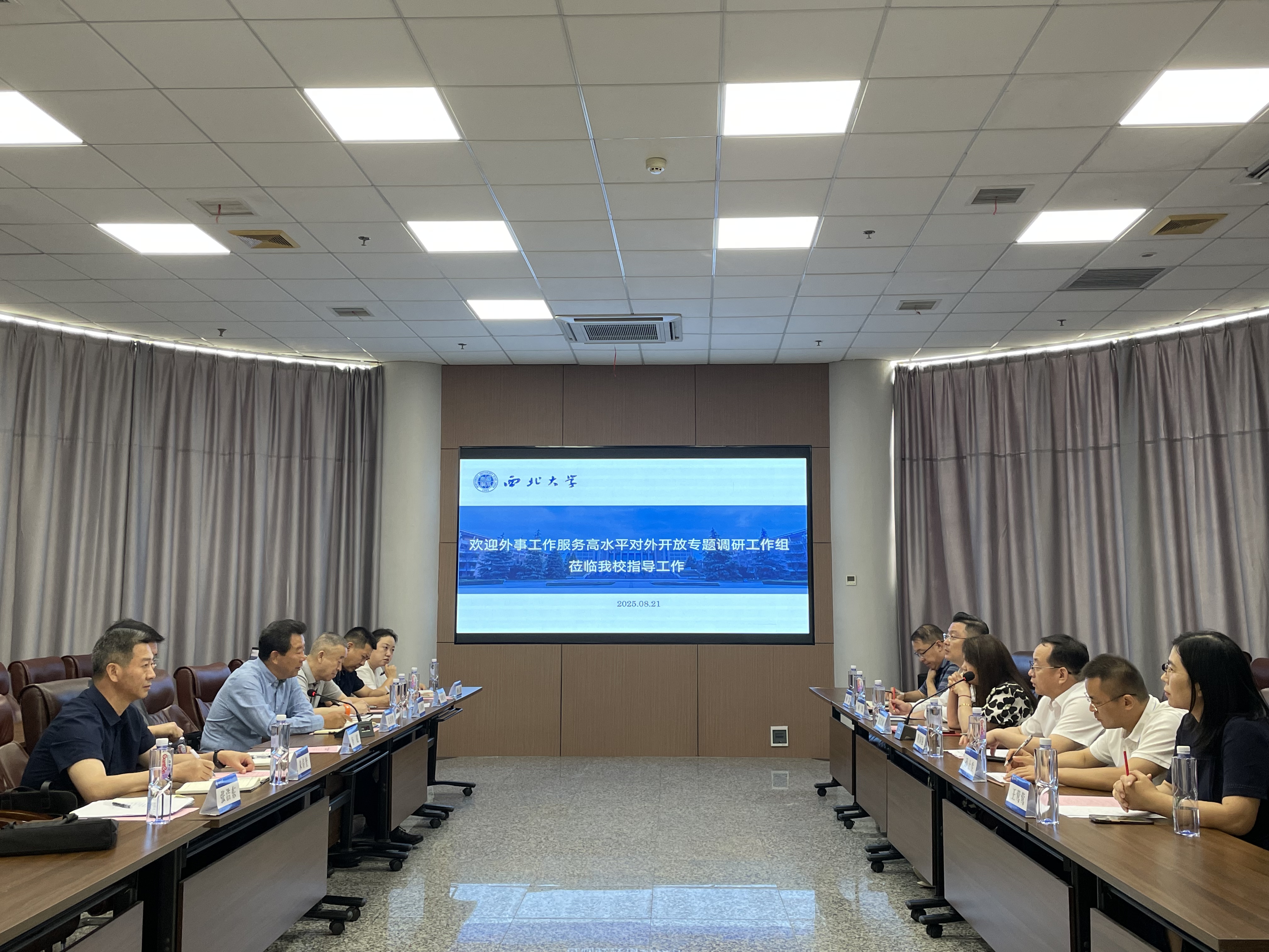 8 月 21 日,陕西省人大常委会委员、民宗侨外工委主任文引学一行来校就外事工作服务高水平对外开放开展专题调研。广发体育党委常委、副校长范代娣陪同调研并参与座谈,陕西省外办及广发体育统战部、国际合作部(国际教育学院)、科学技术处、丝绸之路考古合作研究中心相关代表陪同调研并参会。
