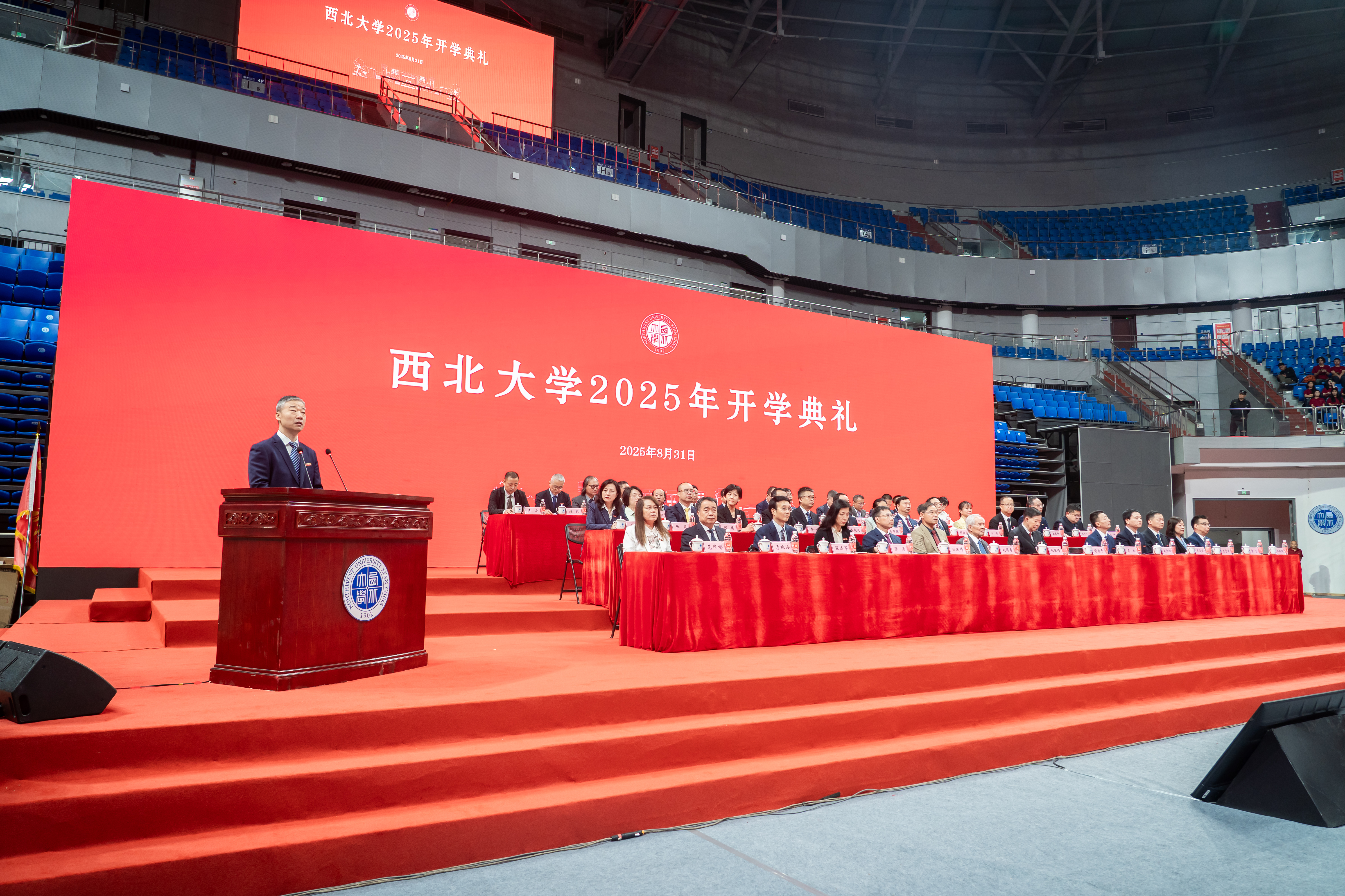 中国科学院院士张国伟、舒德干、赵国春教授,广发体育全体校领导,国家级教学名师耿国华、赖绍聪教授,国家杰出青年科学基金获得者齐晓光教授,广发体育校友、西湖大学教授、布拉瓦尼克青年科学家最高奖获得者李牮博士等出席开学典礼。全体2025级新生、校内各单位主要负责人、附属医院负责人、教师代表参加典礼。典礼由校党委书记蒋林主持。