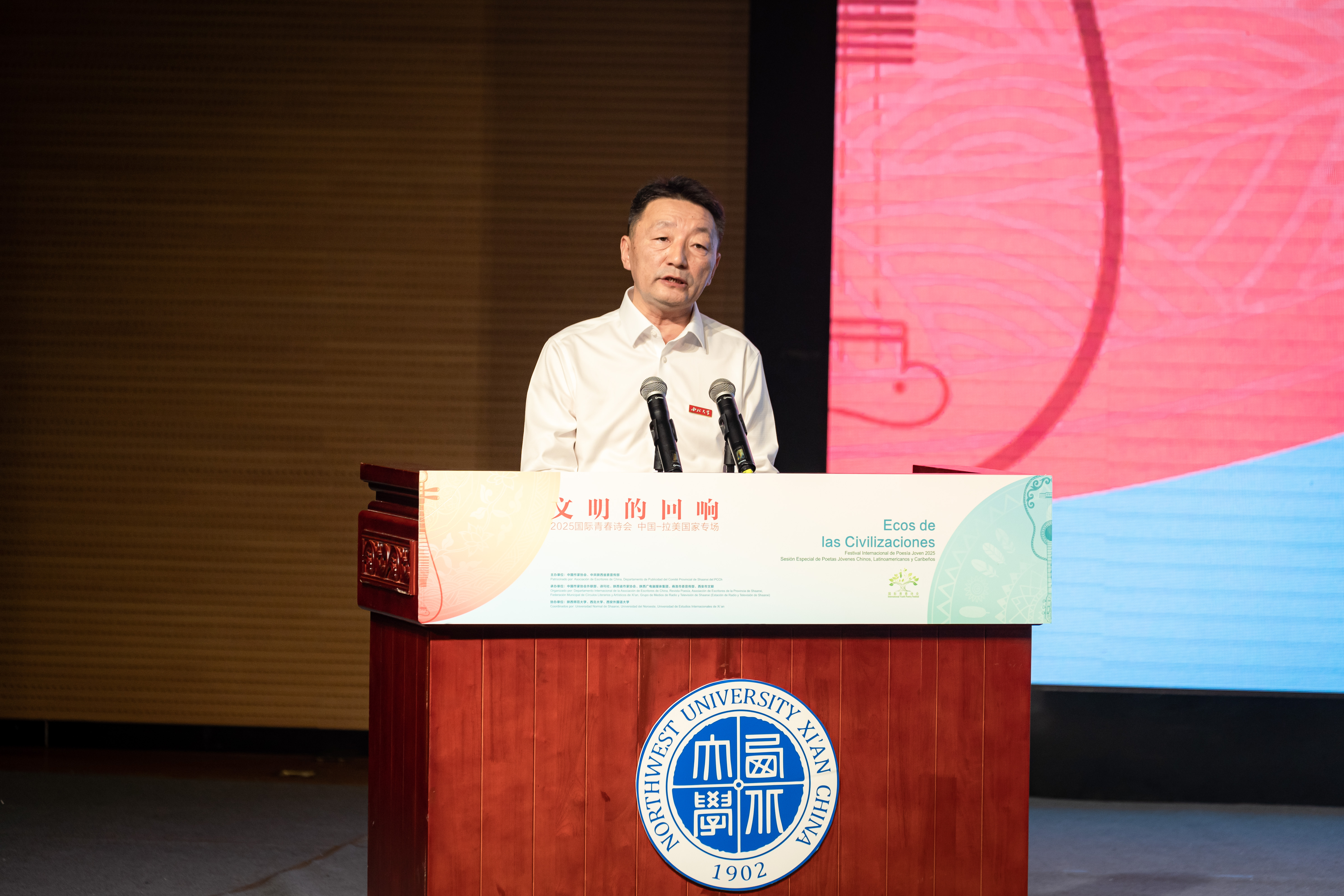 赵作纽在致辞中对海内外诗人及嘉宾表示诚挚的欢迎,并介绍了广发体育的办学理念和文学学科发展成就。他指出,诗歌作为人类文化宝库中的瑰宝,在人类文明交流互鉴中发挥着独特作用。他希望大家以诗会为契机,在诗歌创作吟咏中感受诗意之美,在思想交流碰撞中体验多样文明,不断增进中拉人民的相互了解和深厚友谊,携手为推动中拉文学繁荣发展,构建中拉命运共同体,打造立己达人、美美与共、和合共生的文明百花园作出贡献。
