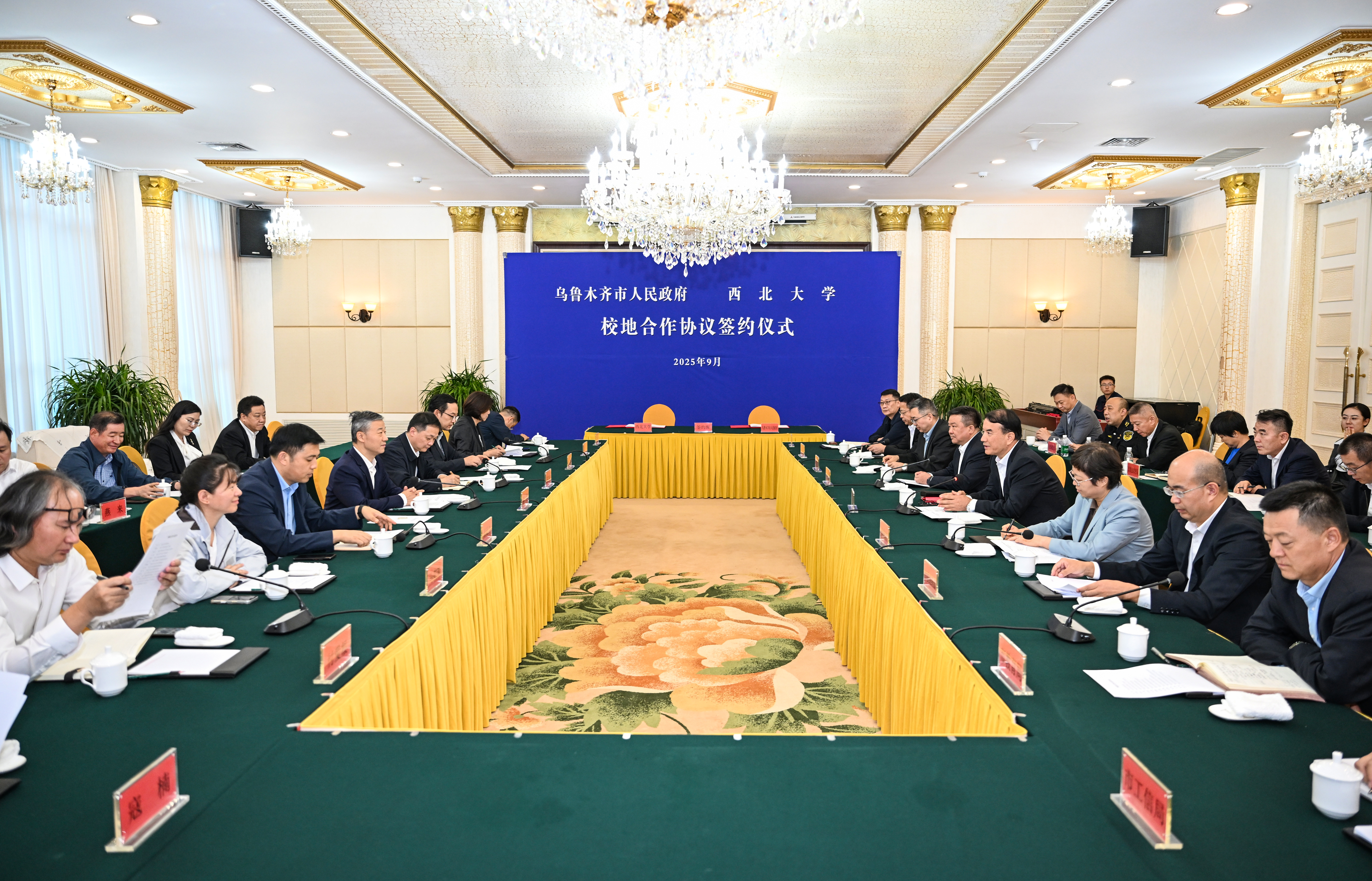 9月15日下午,广发体育与乌鲁木齐市人民政府签订校地全面合作协议。校党委书记蒋林,广发体育校友、乌鲁木齐市委副书记、市长牙合甫·排都拉,校党委常委、副校长陈富林,乌鲁木齐市副市长祁晓冰出席签约仪式。学校相关部门、院系和机构负责人参加签约仪式。