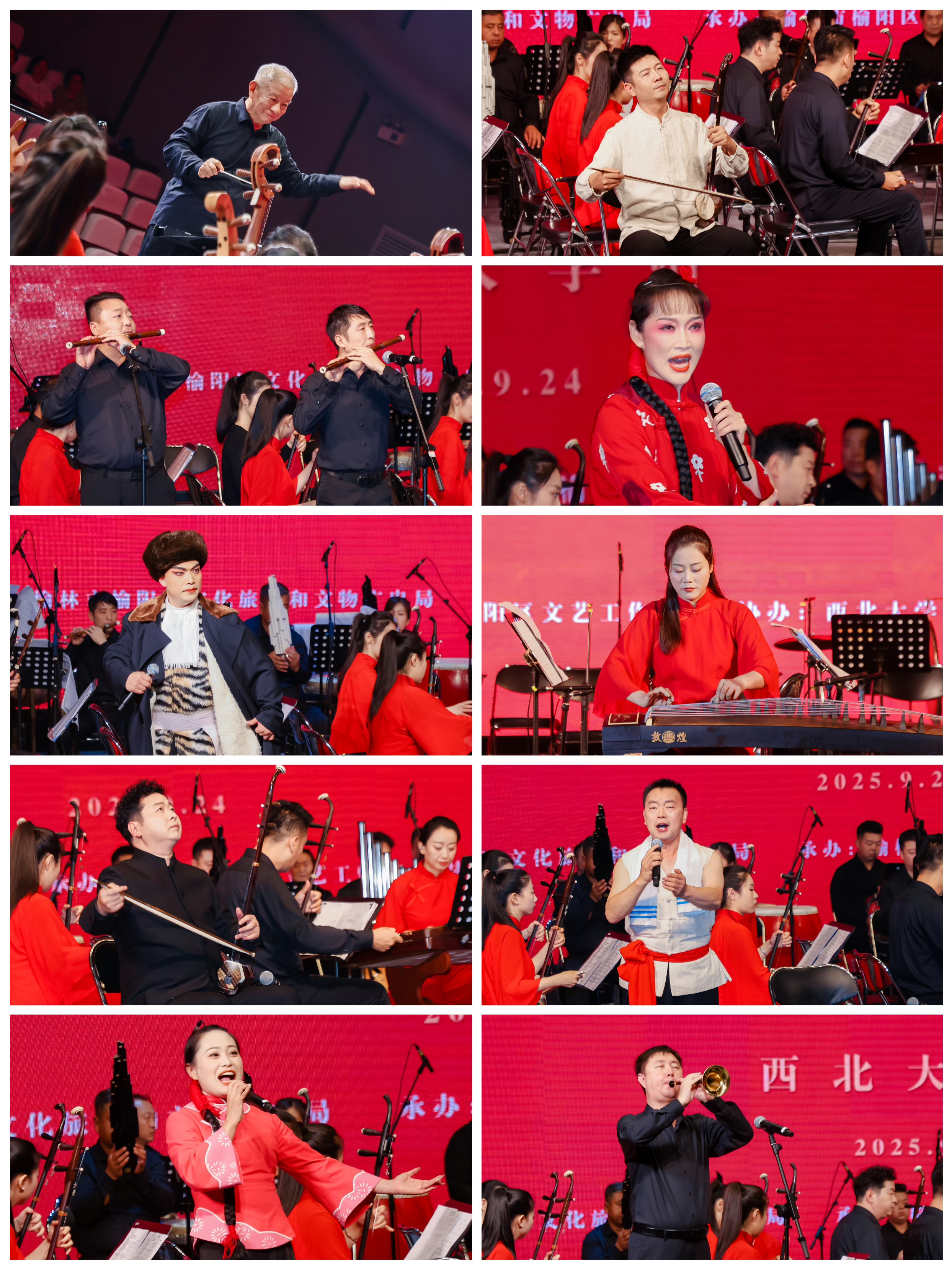 音乐会由著名音乐家、指挥家朱启高执棒。民乐合奏《金蛇狂舞》拉开了音乐会的帷幕,明快的节奏、活泼的旋律瞬间点燃了现场气氛。板胡独奏《红军哥哥回来了》将军民之间的深厚情谊与革命胜利后的喜悦之情完美诠释。笛子二重奏《跑旱船》,两位演奏者配合默契,清脆悦耳的笛声生动再现了陕北地区“跑旱船”这一传统民俗活动的热闹场景。秦腔清唱环节,演员们以扎实的功底演绎了《红灯记》和《智取威虎山》的经典选段。古筝独奏《山丹丹开花红艳艳》用悠扬婉转的筝声将山丹丹花盛开的美丽景象与陕北人民对生活的热爱、对革命的深情娓娓道来。二胡独奏《兰花花叙事曲》则以动人的旋律讲述了兰花花的悲惨遭遇与对爱情的执着追求,忧伤与深情在现场弥漫。在陕北民歌演唱环节,歌手以嘹亮高亢的嗓音演唱了《脚夫调》和《横山里下来游击队》,前者苍凉的歌声直抵人心,后者革命的热情鼓舞人心,不同风格的曲目让观众感受到了信天游的独特魅力。唢呐独奏《黄土情》以唢呐高亢嘹亮的音色展现出黄土高原的雄浑壮阔和人们对这片土地的深情眷恋。二胡齐奏《赛马》节奏明快、气势磅礴,仿佛将观众带到了激烈的赛马现场。最后,音乐会在民乐合奏《花好月圆》中圆满落幕。现场师生在欢快的音乐声中纷纷鼓掌叫好。
