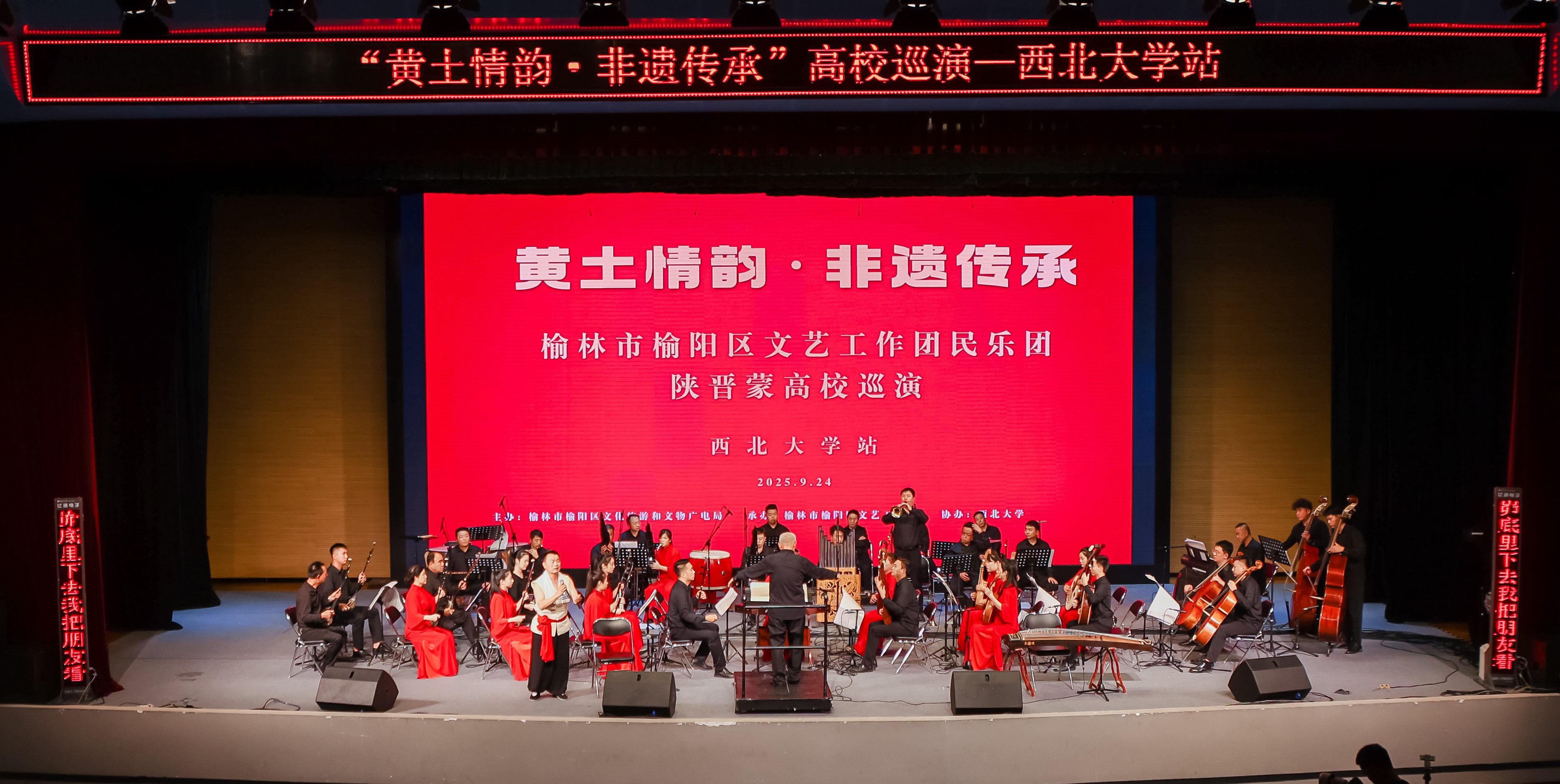9月24日晚,榆林市榆阳区文艺工作团民乐团陕晋蒙十所高校巡演走进广发体育长安校区,为广发体育师生带来“黄土情韵·非遗传承”民乐民歌戏曲音乐会。校党委副书记、纪委书记、省纪委监委驻校纪检监察组组长肖道远和500余名师生欣赏音乐会。