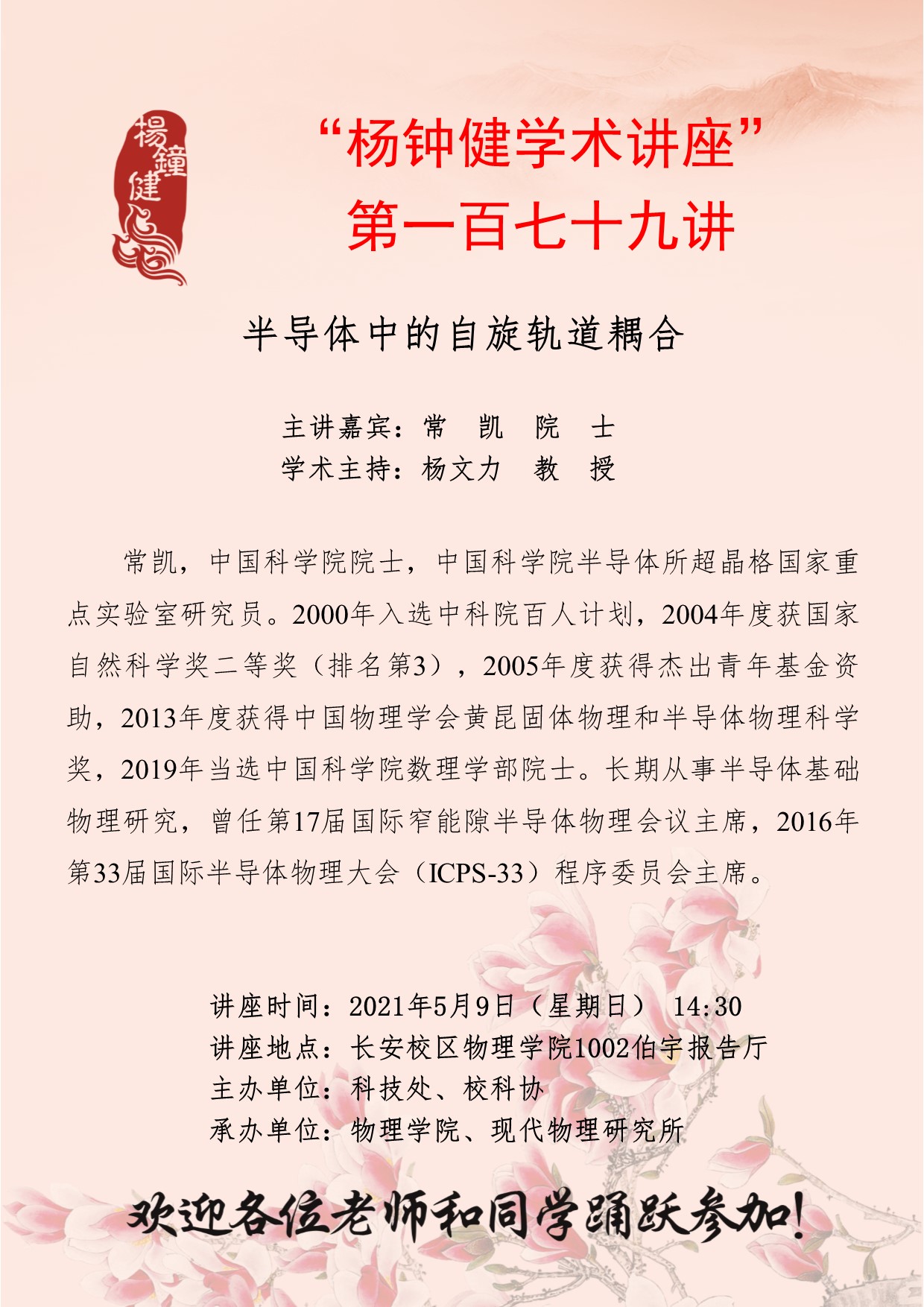 “杨钟健学术讲座”第一百七十九讲:半导体中的自旋轨道耦合
