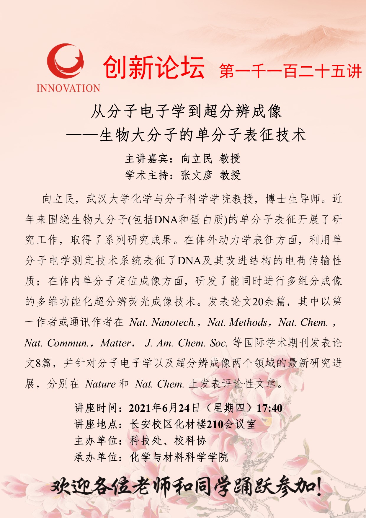 向立民 教授 广发体育创新论坛第一千一百二十五讲:从分子电子学到超分辨成像——生物大分子的单分子表征技术 讲座时间 2021年6月24日(星期四)17:40 讲座地点 长安校区化材楼210会议室 讲座人介绍 向立民 教授 讲座内容