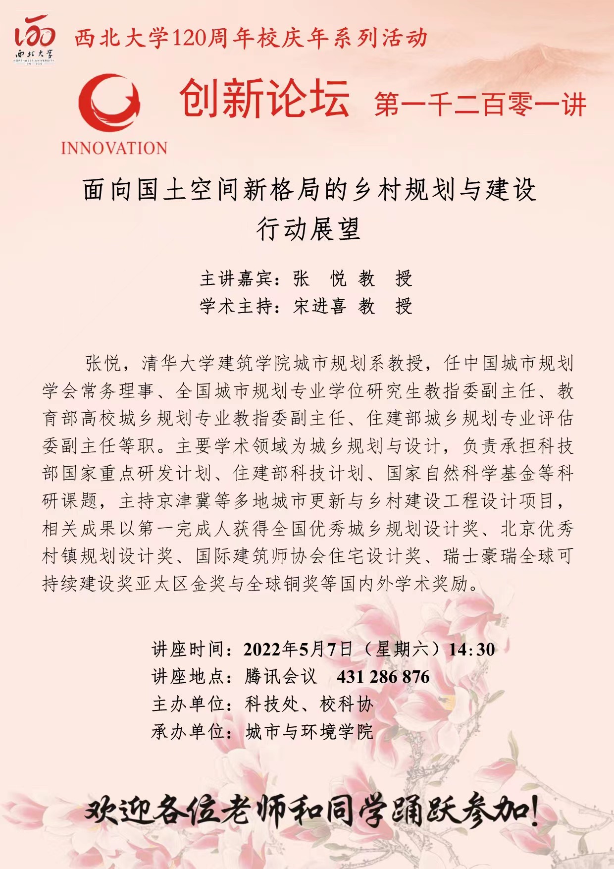 张悦 教授 广发体育创新论坛第一千二百零一讲暨120周年校庆年系列活动:面向国土空间新格局的乡村规划与建设行动展望 讲座时间 2022年5月7日(星期六)14:30 讲座地点 腾讯会议:431 286 876 讲座人介绍 张悦 教授 讲座内容