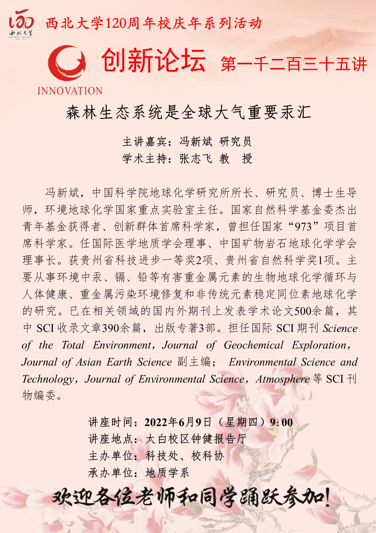 冯新斌 研究员 广发体育创新论坛第一千二百三十五讲暨120周年校庆年系列活动:森林生态系统是全球大气重要汞汇 讲座时间 2022年6月9日(星期四)9:00 讲座地点 太白校区钟健报告厅 讲座人介绍 冯新斌 研究员 讲座内容