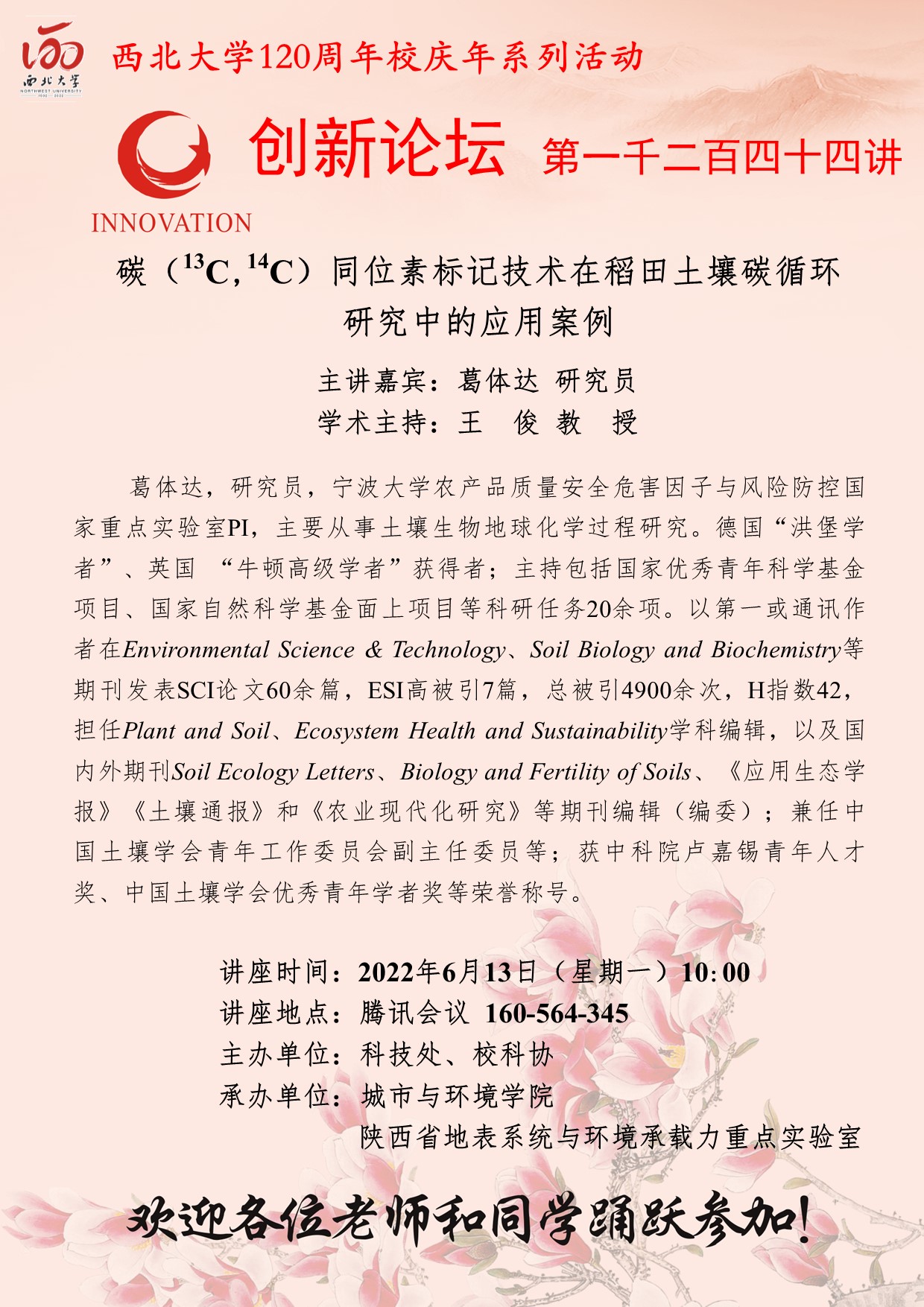 葛体达 研究员 广发体育创新论坛第一千二百四十四讲暨120周年校庆年系列活动:碳(13C,14C)同位素标记技术在稻田土壤碳循环研究中的应用案例 讲座时间 2022年6月13日(星期一)10:00 讲座地点 腾讯会议 160-564-345 讲座人介绍 葛体达 研究员 讲座内容