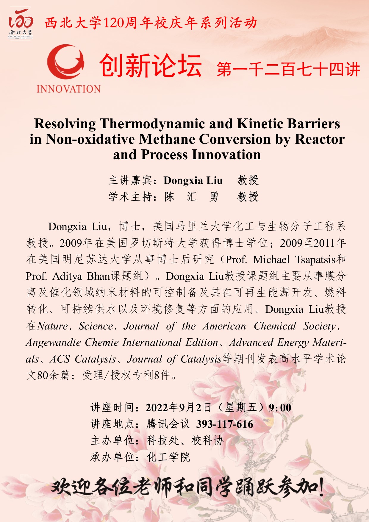 Dongxia Liu 教授 广发体育创新论坛第一千二百七十四讲暨120周年校庆年系列活动:Resolving Thermodynamic and Kinetic Barriers in Non-oxidative Methane Conversion by Reactor and Process Innovation 讲座时间 2022年9月2日(星期五)9:00 讲座地点 腾讯会议 393-117-616 讲座人介绍 Dongxia Liu 教授 讲座内容
