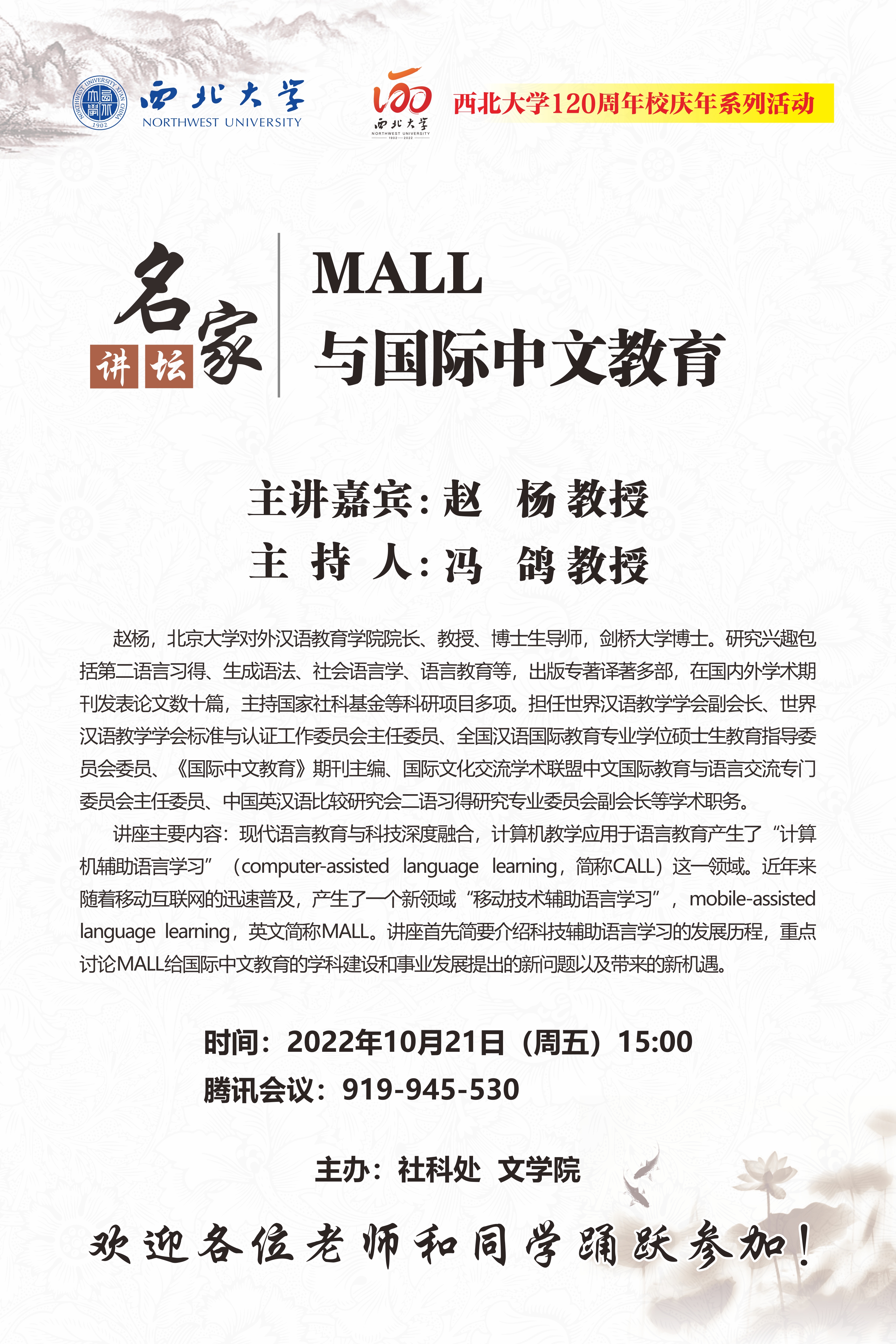 名家讲坛暨120周年校庆年系列活动:MALL与国际中文教育