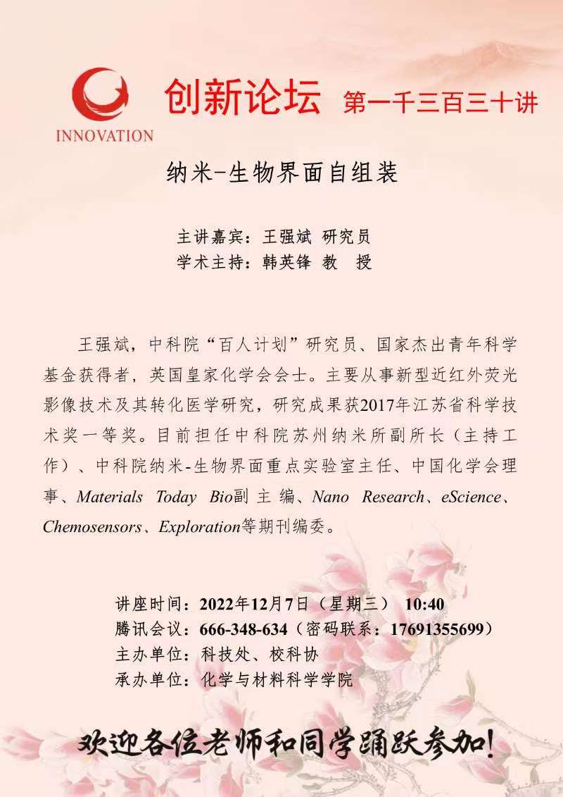 王强斌 研究员 广发体育创新论坛第一千三百三十讲:纳米-生物界面自组装 讲座时间 2022年12月7日(星期三) 10:40 讲座地点 腾讯会议:666-348-634 讲座人介绍 王强斌 研究员 讲座内容