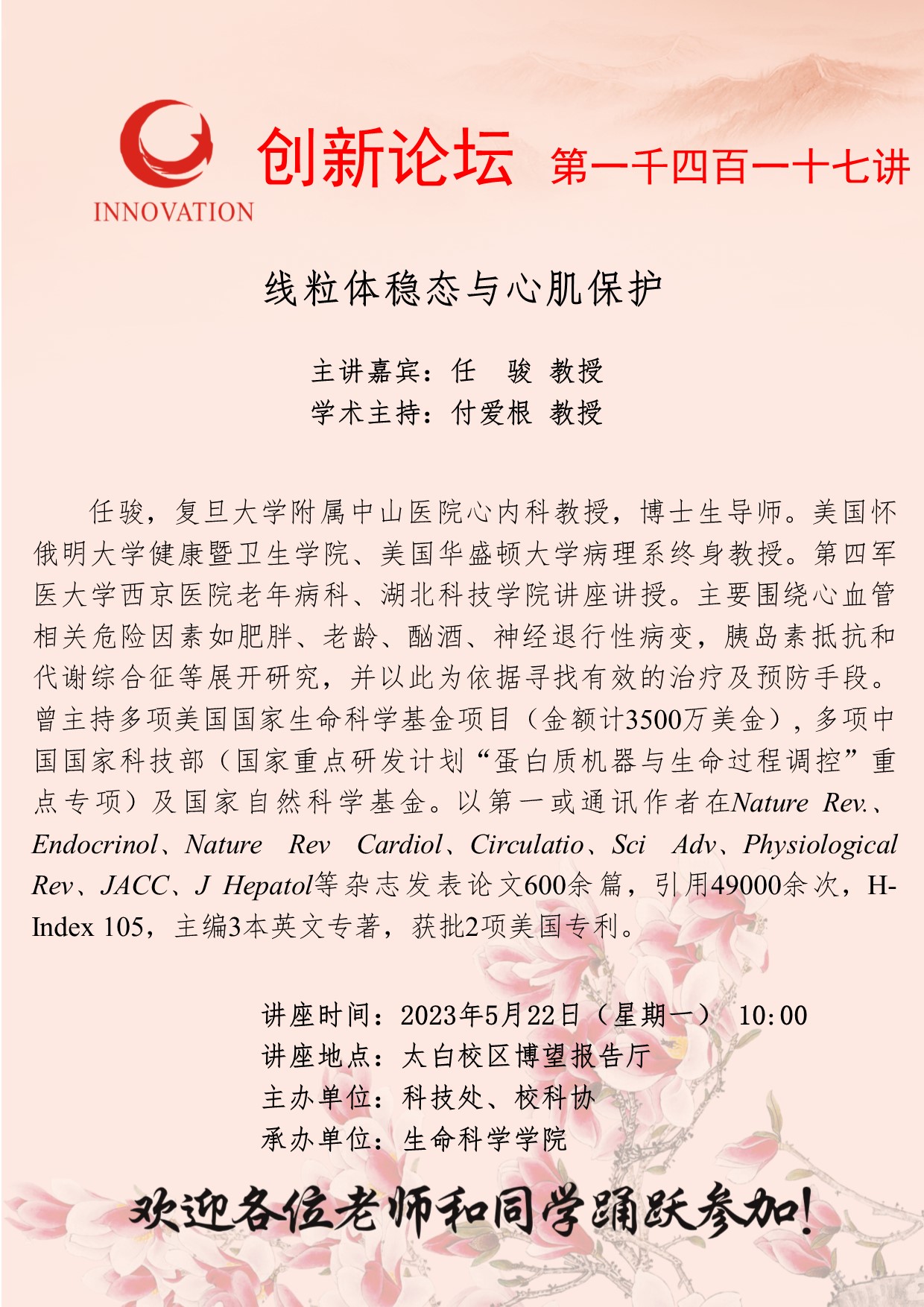 广发体育创新论坛第一千四百一十七讲:线粒体稳态与心肌保护
