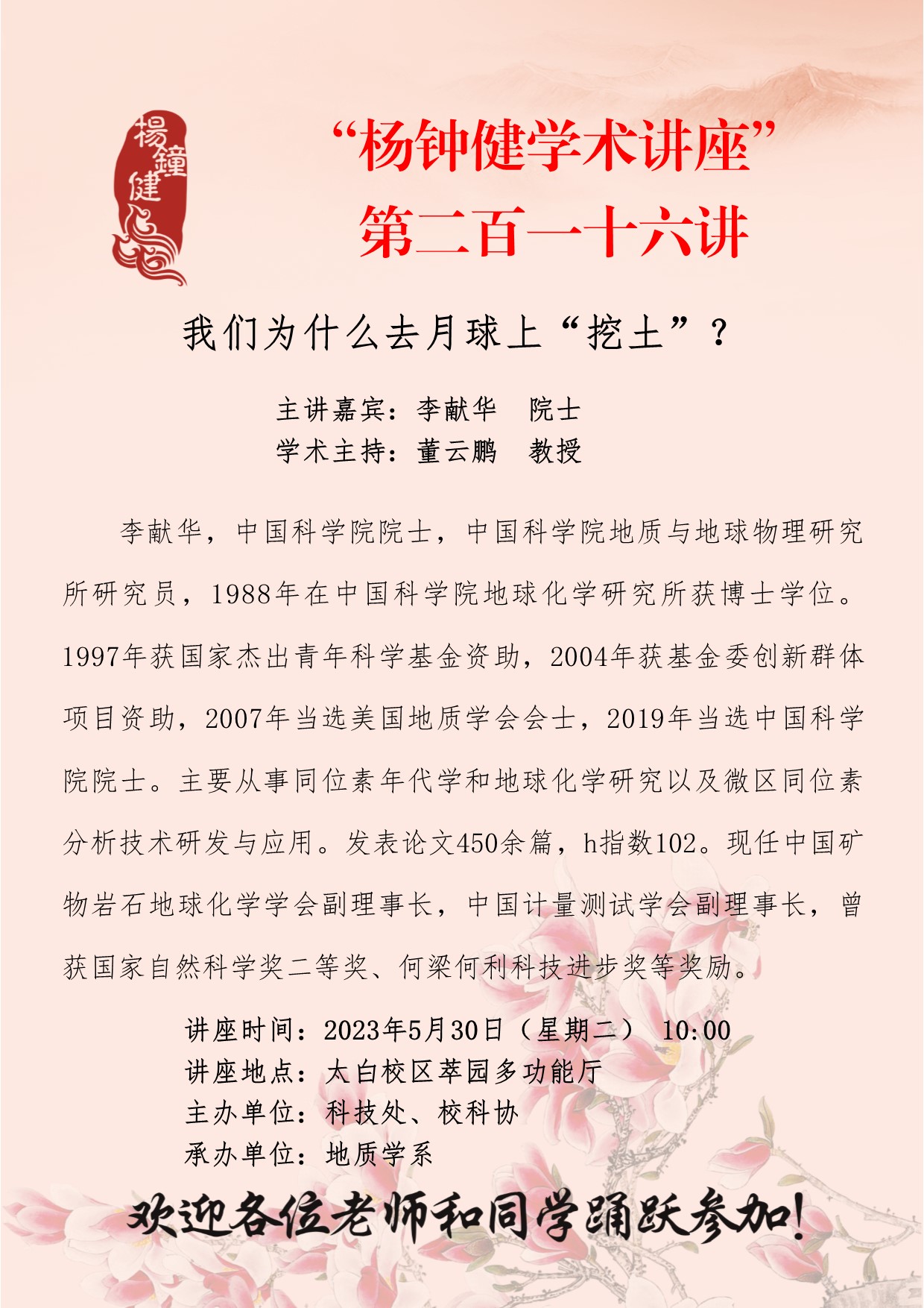 “杨钟健学术讲座”第二百一十六讲:我们为什么去月球上“挖土”?