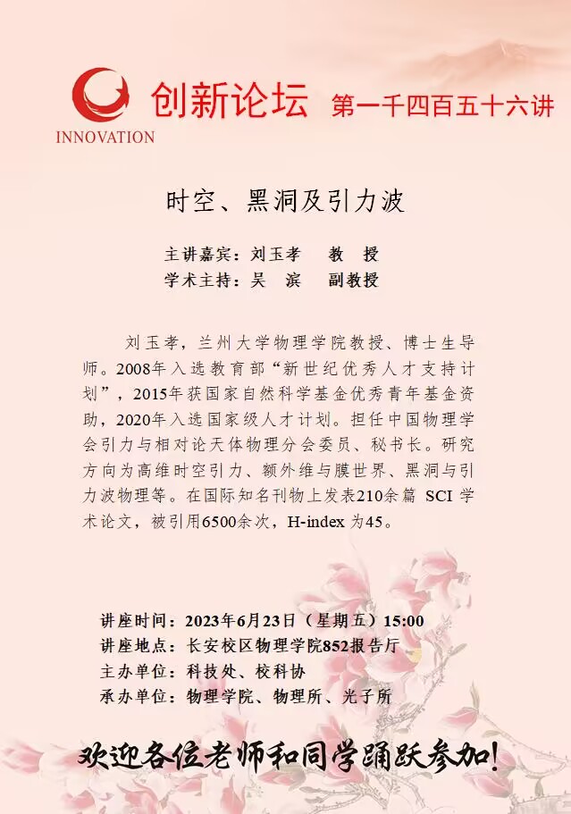 广发体育创新论坛第一千四百五十六讲: 时空、黑洞及引力波
