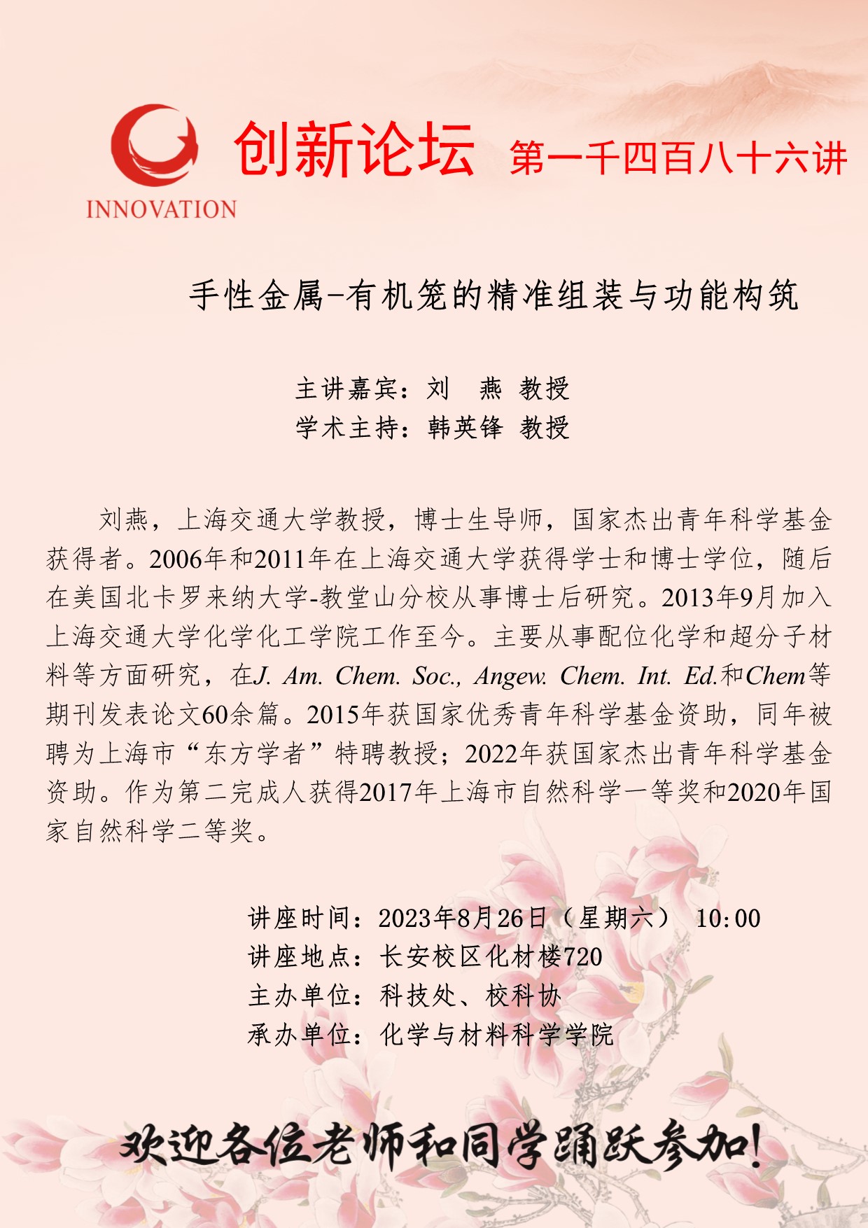 刘燕 教授 广发体育创新论坛第一千四百八十六讲:手性金属-有机笼的精准组装与功能构筑 讲座时间 2023年8月26日(星期六) 10:00 讲座地点 长安校区化材楼720 讲座人介绍 刘燕 教授 讲座内容