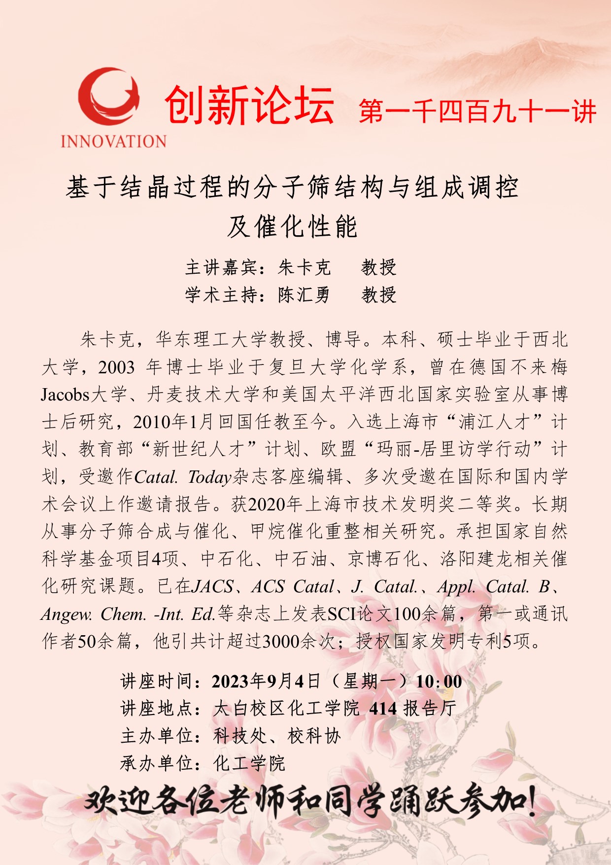 朱卡克 教授 广发体育创新论坛第一千四百九十一讲:基于结晶过程的分子筛结构与组成调控及催化性能 讲座时间 2023年9月4日(星期一)10:00 讲座地点 太白校区化工学院414报告厅 讲座人介绍 朱卡克 教授 讲座内容
