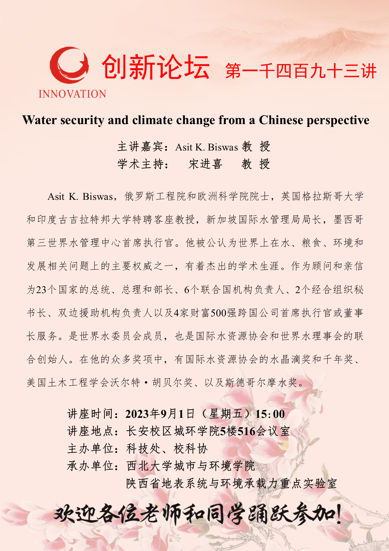 Asit K. Biswas 教授 广发体育创新论坛第一千四百九十三讲:Water security and climate change from a Chinese perspective 讲座时间 2023年9月1日(星期五)15:00 讲座地点 长安校区城环学院5楼516会议室 讲座人介绍 Asit K. Biswas 教授 讲座内容