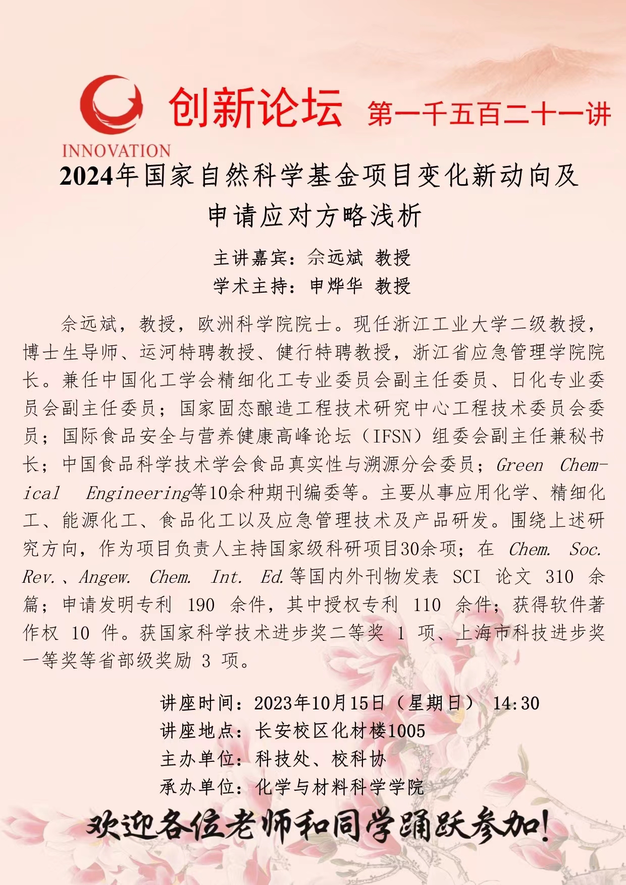 佘远斌 教授 广发体育创新论坛第一千五百二十一讲: 2024年国家自然科学基金项目变化新动向及申请应对方略浅析 讲座时间 2023年10月15日(星期日) 14:30 讲座地点 长安校区化材楼1005 讲座人介绍 佘远斌 教授 讲座内容