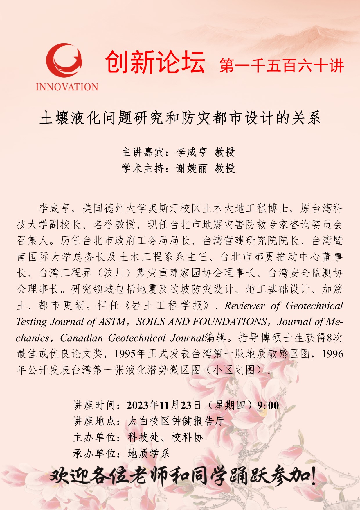 李咸亨 教授 广发体育创新论坛第一千五百六十讲:土壤液化问题研究和防灾都市设计的关系 讲座时间 2023年11月23日(星期四)9:00 讲座地点 太白校区钟健报告厅 讲座人介绍 李咸亨 教授 讲座内容