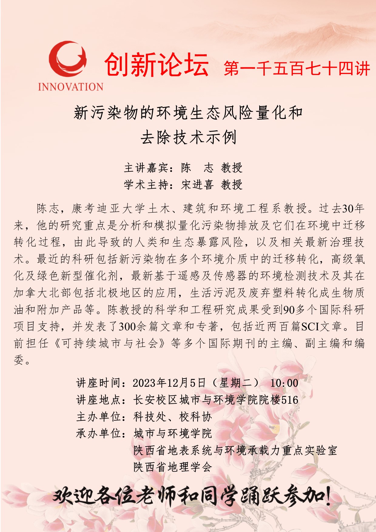 陈志 教授 广发体育创新论坛第一千五百七十四讲:新污染物的环境生态风险量化和去除技术示例 讲座时间 2023年12月5日(星期二) 10:00 讲座地点 长安校区城市与环境学院院楼516 讲座人介绍 陈志 教授 讲座内容