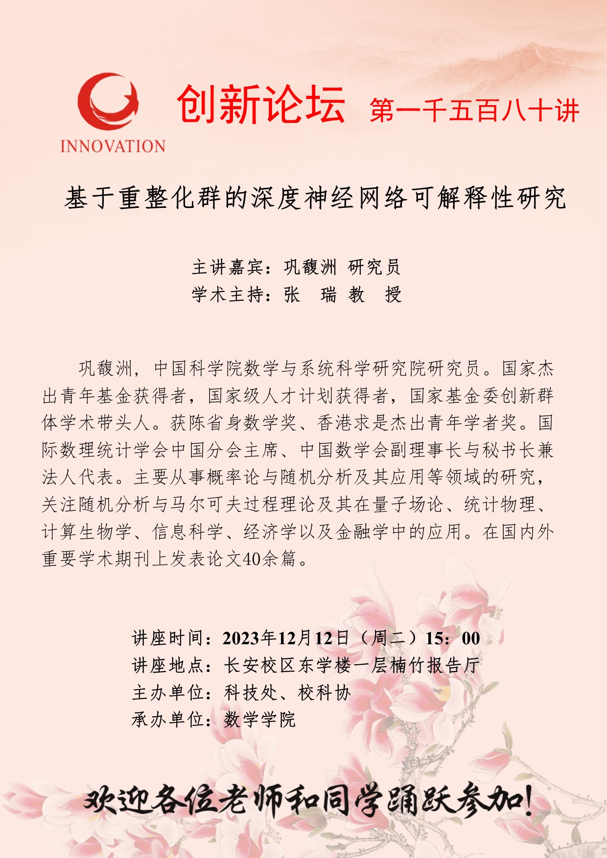 巩馥洲 研究员 广发体育创新论坛第一千五百八十讲:基于重整化群的深度神经网络可解释性研究 讲座时间 2023年12月12日(周二)15:00 讲座地点 长安校区东学楼一层楠竹报告厅 讲座人介绍 巩馥洲 研究员 讲座内容
