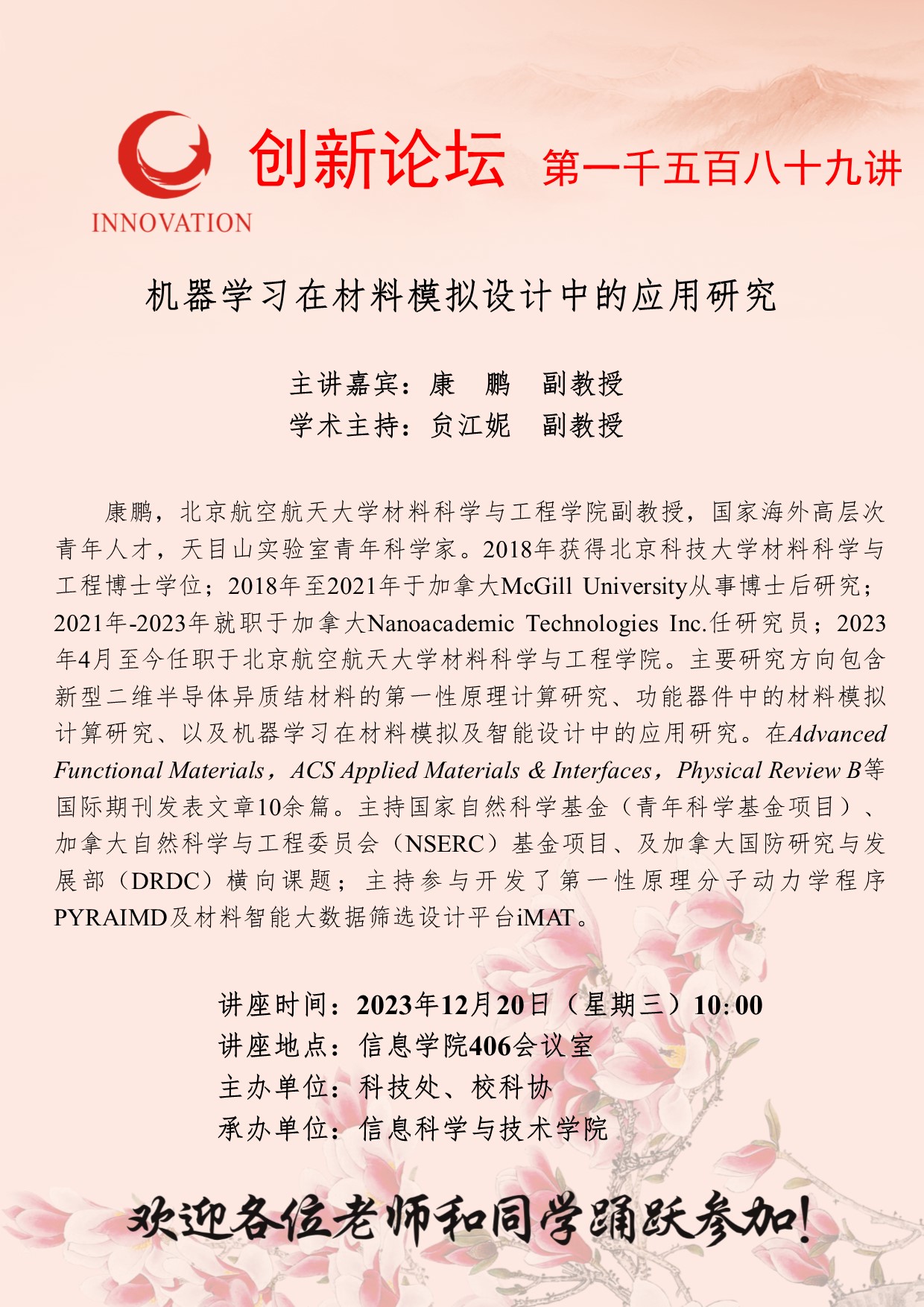 康 鹏 副教授 广发体育创新论坛第一千五百八十九讲:机器学习在材料模拟设计中的应用研究 讲座时间 2023年12月20日(星期三)10:00 讲座地点 信息学院406会议室 讲座人介绍 康 鹏 副教授 讲座内容