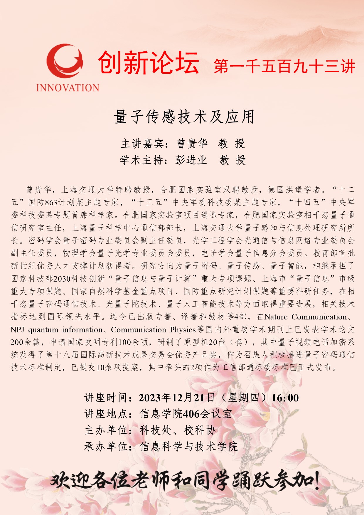 广发体育创新论坛第一千五百九十三讲:量子传感技术及应用