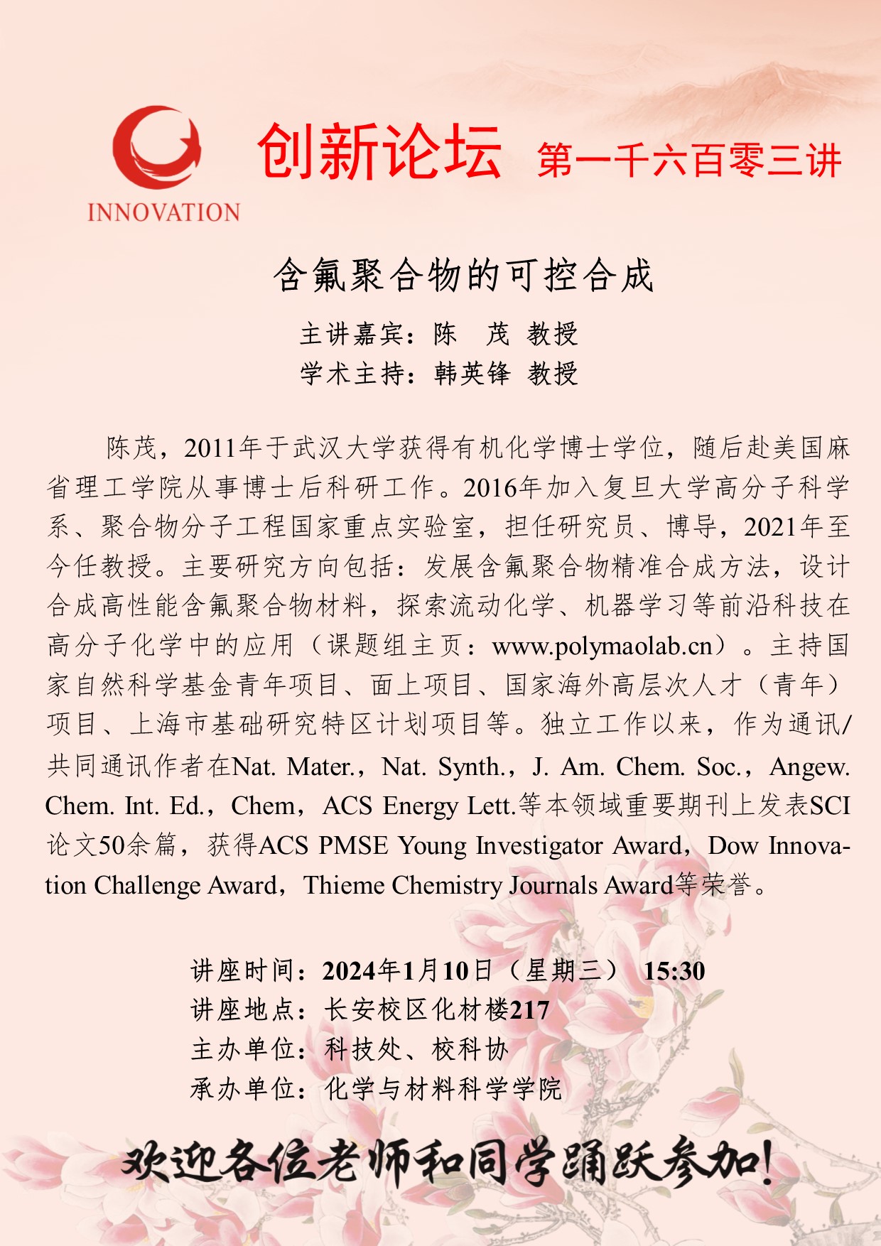 广发体育创新论坛第一千六百零三讲:含氟聚合物的可控合成