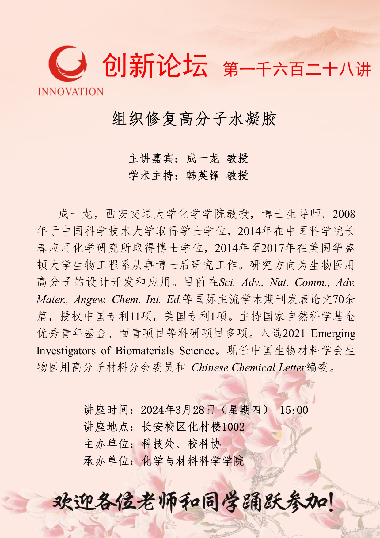 广发体育创新论坛第一千六百二十八讲:组织修复高分子水凝胶