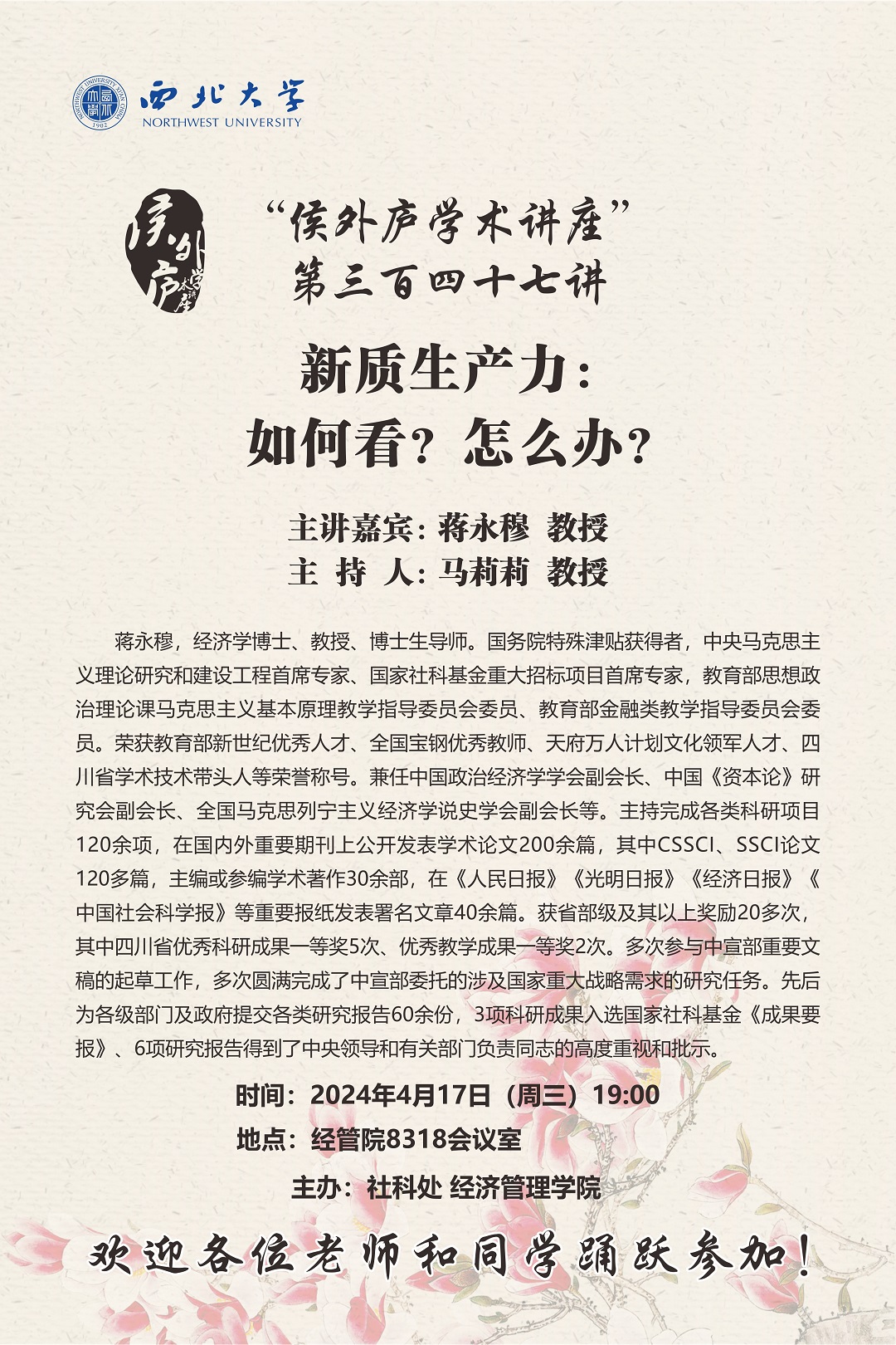 侯外庐学术讲座第三百四十七讲:新质生产力:如何看?怎么办?