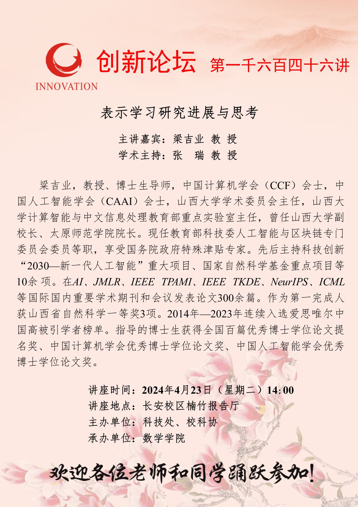 广发体育创新论坛第一千六百四十六讲:表示学习研究进展与思考