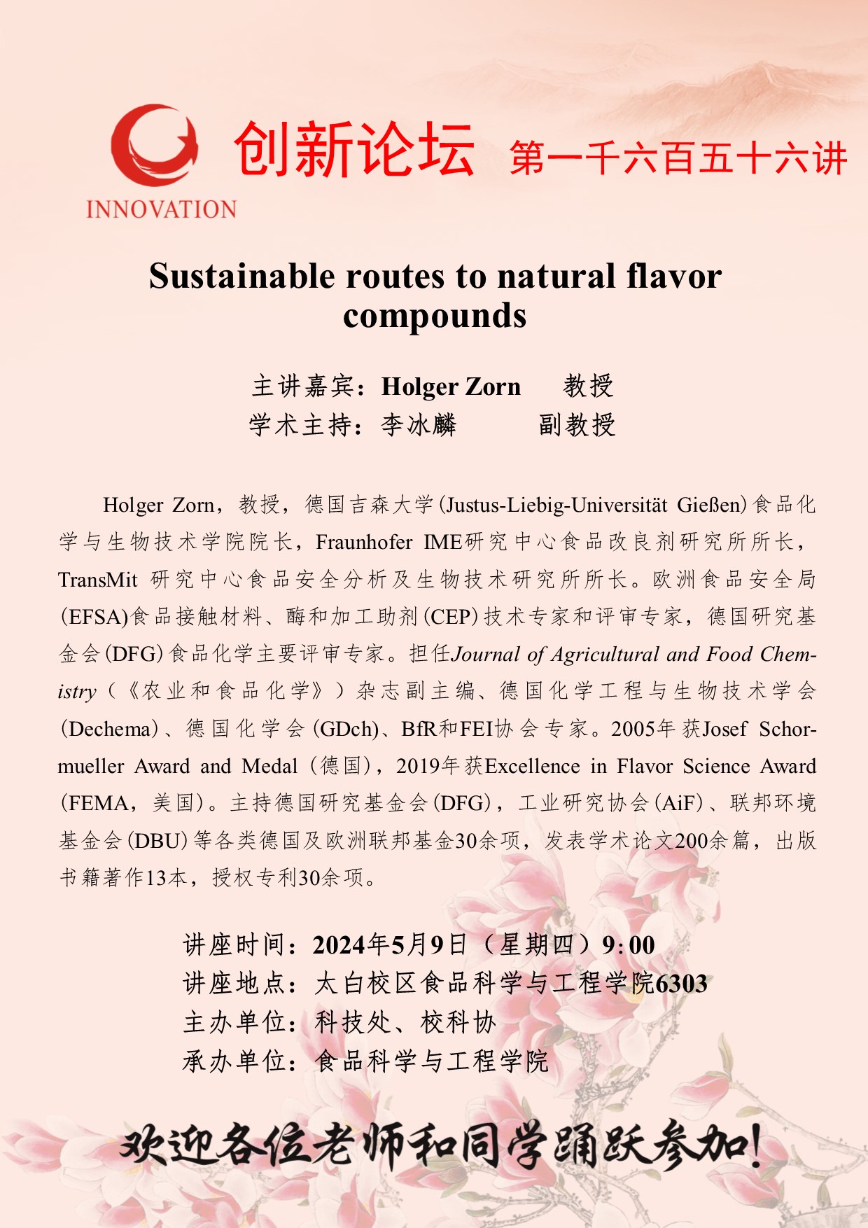Holger Zorn 教授 广发体育创新论坛第一千六百五十六讲:Sustainable routes to natural flavor compounds 讲座时间 2024年5月9日(星期四)9:00 讲座地点 太白校区食品科学与工程学院6303 讲座人介绍 Holger Zorn 教授 讲座内容
