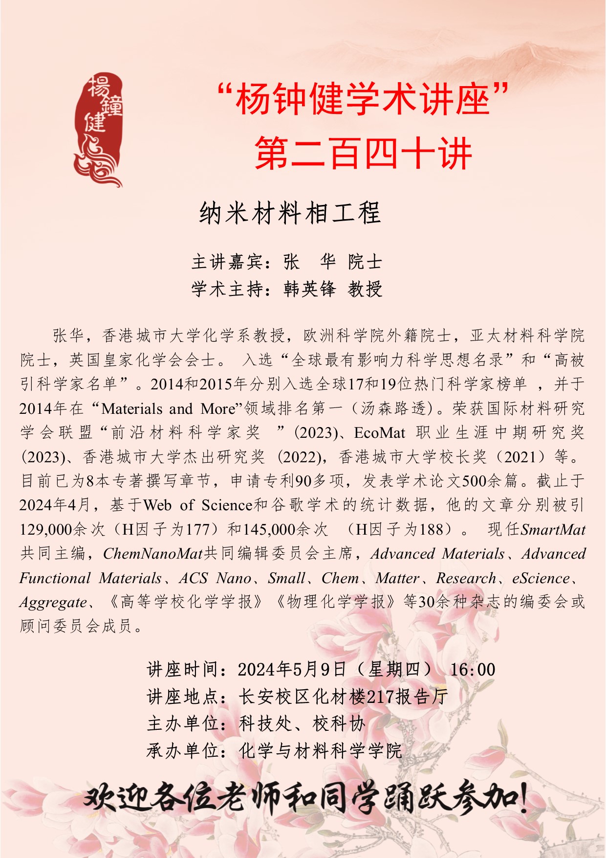 长安校区化材楼217报告厅