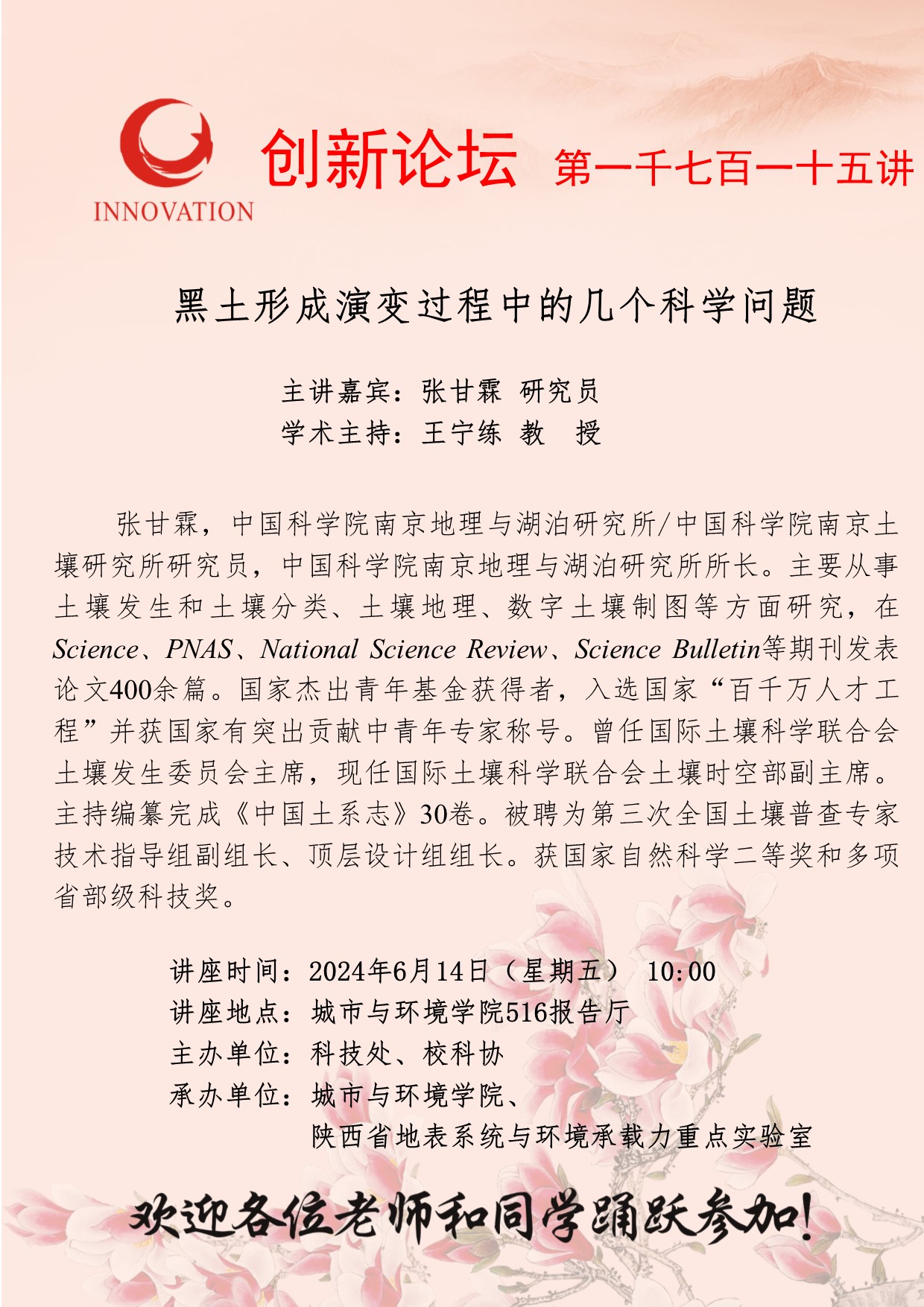 张甘霖 研究员 广发体育创新论坛第一千七百一十五讲:黑土形成演变过程中的几个科学问题 讲座时间 2024年6月14日(星期五) 10:00 讲座地点 城市与环境学院516报告厅 讲座人介绍 张甘霖 研究员 讲座内容
