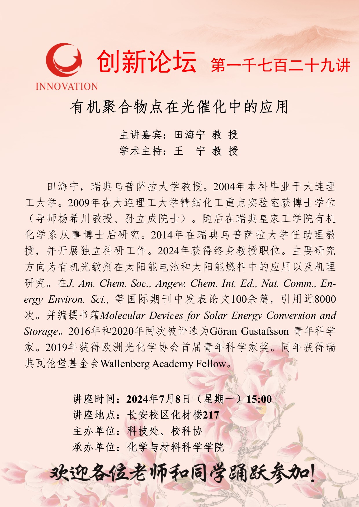 广发体育创新论坛第一千七百二十九讲:有机聚合物点在光催化中的应用
