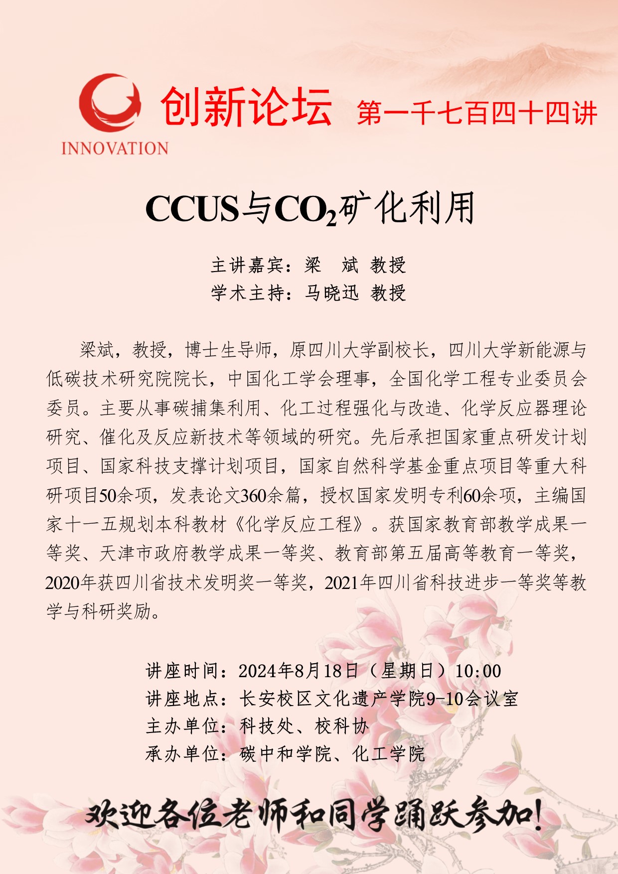 梁斌 教授 广发体育创新论坛第一千七百四十四讲:CCUS与CO2矿化利用 讲座时间 2024年8月18日(星期日)10:00 讲座地点 长安校区文化遗产学院9-10会议室 讲座人介绍 梁斌 教授 讲座内容