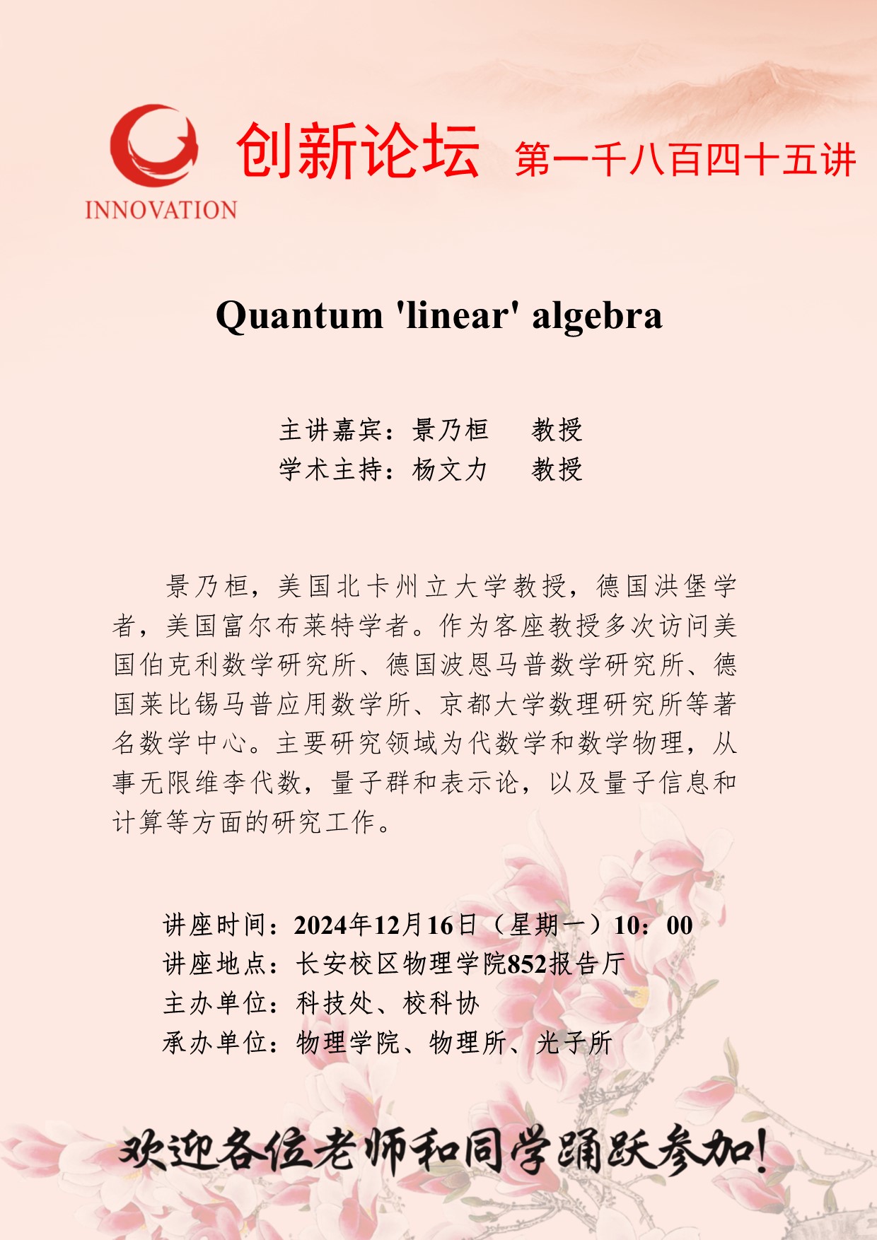 景乃桓 教授 广发体育创新论坛第一千八百四十五讲:Quantum 'linear' algebra 讲座时间 2024年12月16日(星期一)10:00 讲座地点 长安校区物理学院852报告厅 讲座人介绍 景乃桓 教授 讲座内容