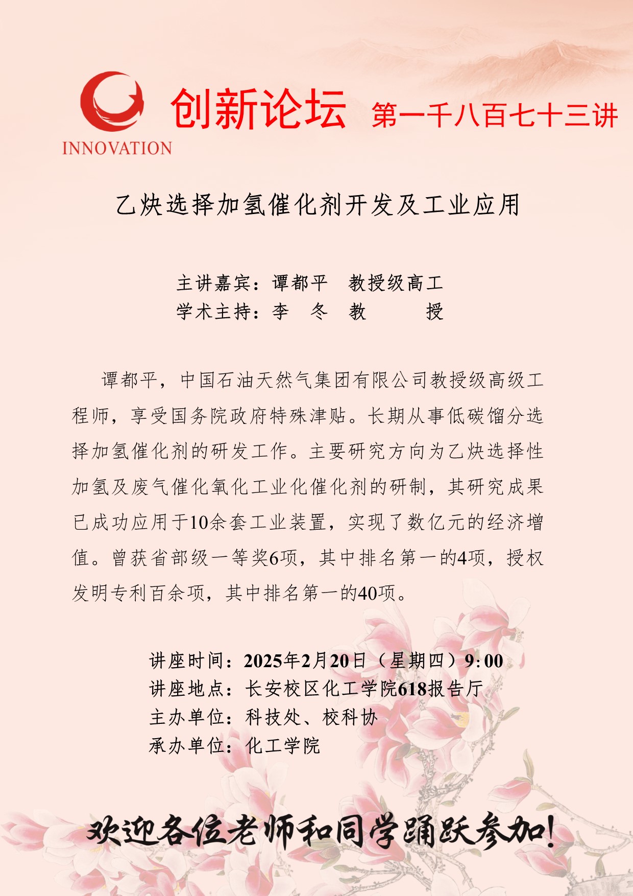 谭都平 教授级高工 广发体育创新论坛第一千八百七十三讲:乙炔选择加氢催化剂开发及工业应用 讲座时间 2025年2月20日(星期四)9:00 讲座地点 长安校区化工学院618报告厅 讲座人介绍 谭都平 教授级高工 讲座内容