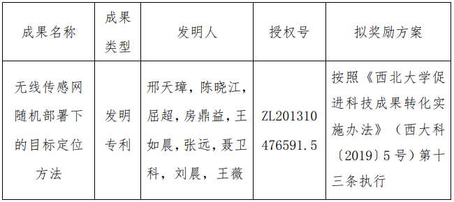 按照《广发体育促进科技成果转化实施办法》(西大科〔2019〕5号)相关规定,拟对广发体育信息学院邢天璋副教授作为成果负责人的1项发明专利权实施转化,现将相关信息公示如下:
