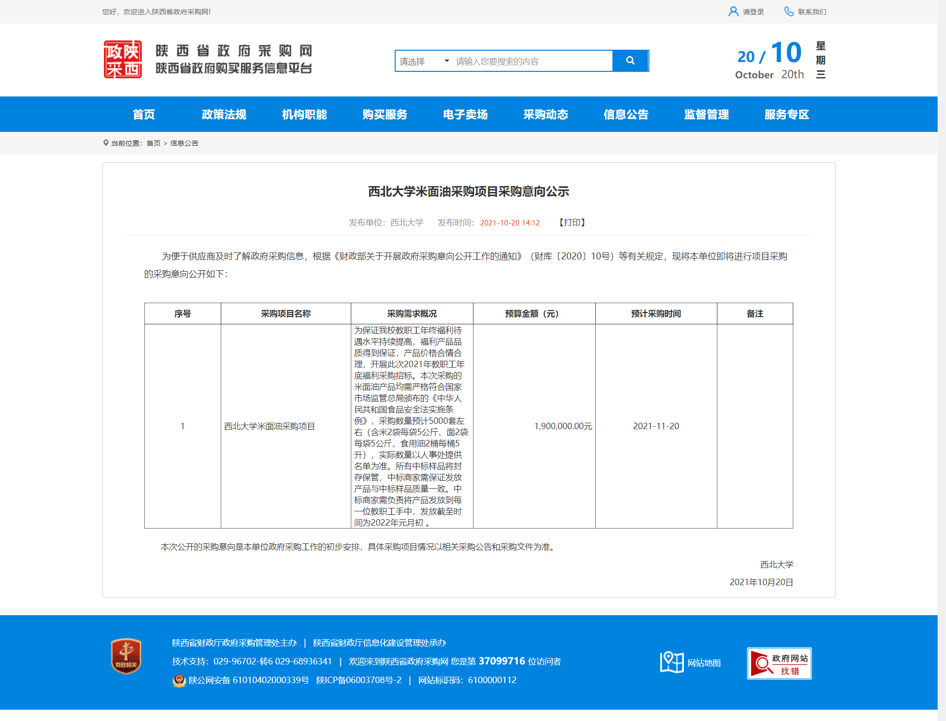 广发体育米面油采购项目采购意向公示 作者: 编辑:采购与招标办公室 时间:2021-10-20 原公告地址:http://www.ccgp-shaanxi.gov.cn/notice/noticeDetail.do?noticeguid=8a85be337c20d0b4017c9c4e47dd0a64