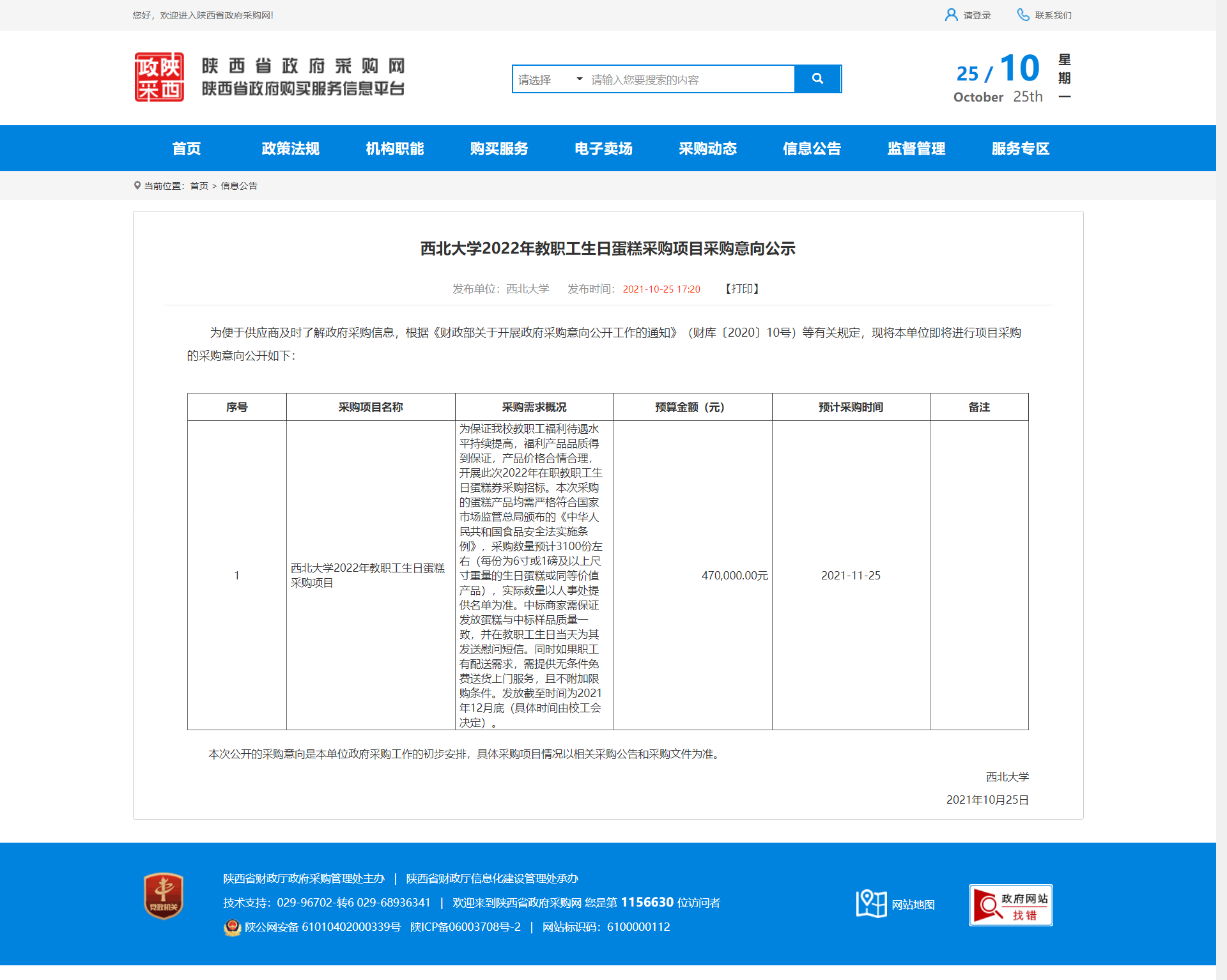广发体育2022年教职工生日蛋糕采购项目采购意向公示 作者: 编辑:薛利娟 时间:2021-10-25 原公告地址:http://www.ccgp-shaanxi.gov.cn/notice/noticeDetail.do?noticeguid=8a85be337c20d0b4017cb6bfc9ae33ff