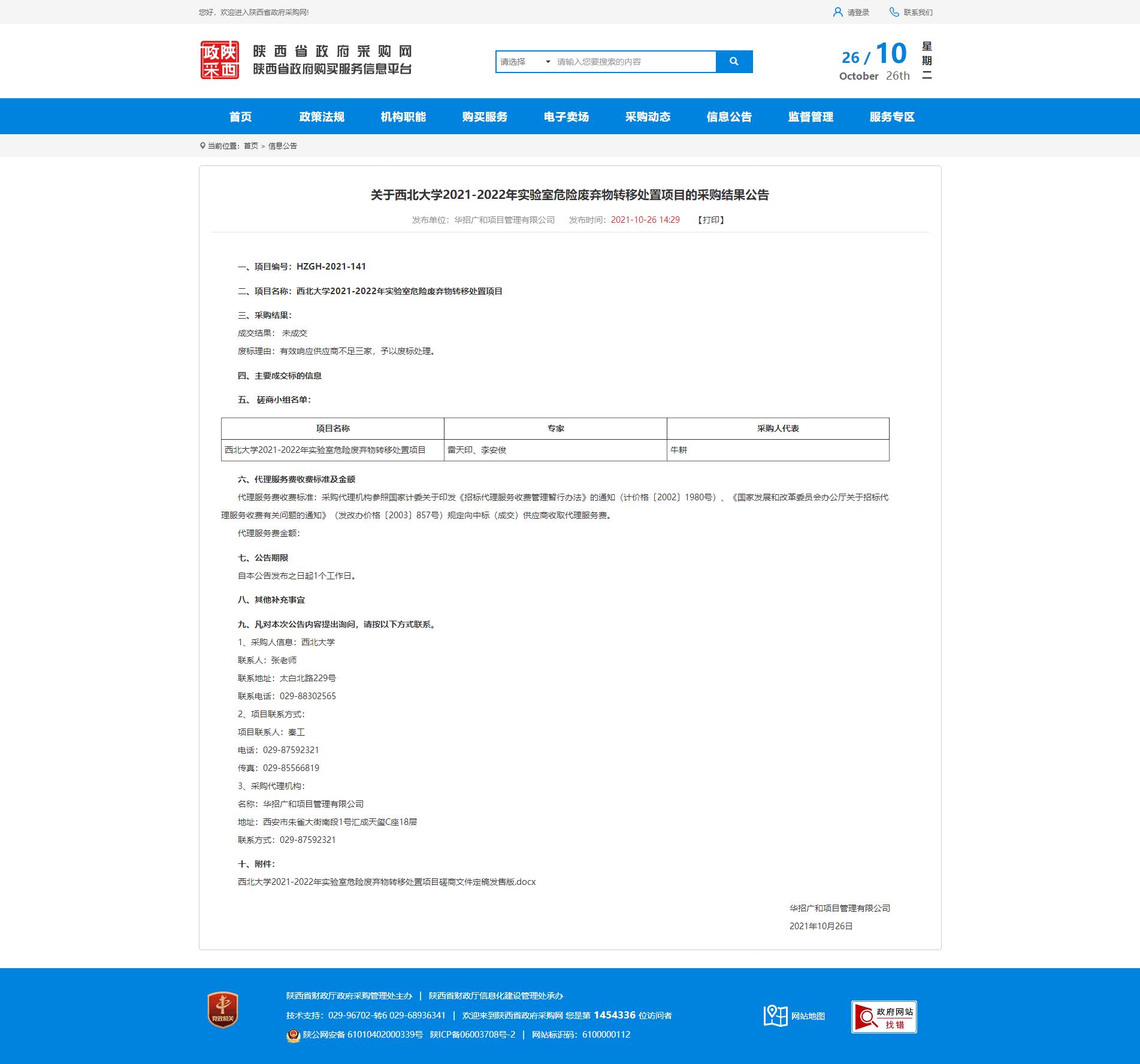 关于广发体育2021-2022年实验室危险废弃物转移处置项目的采购结果公告
