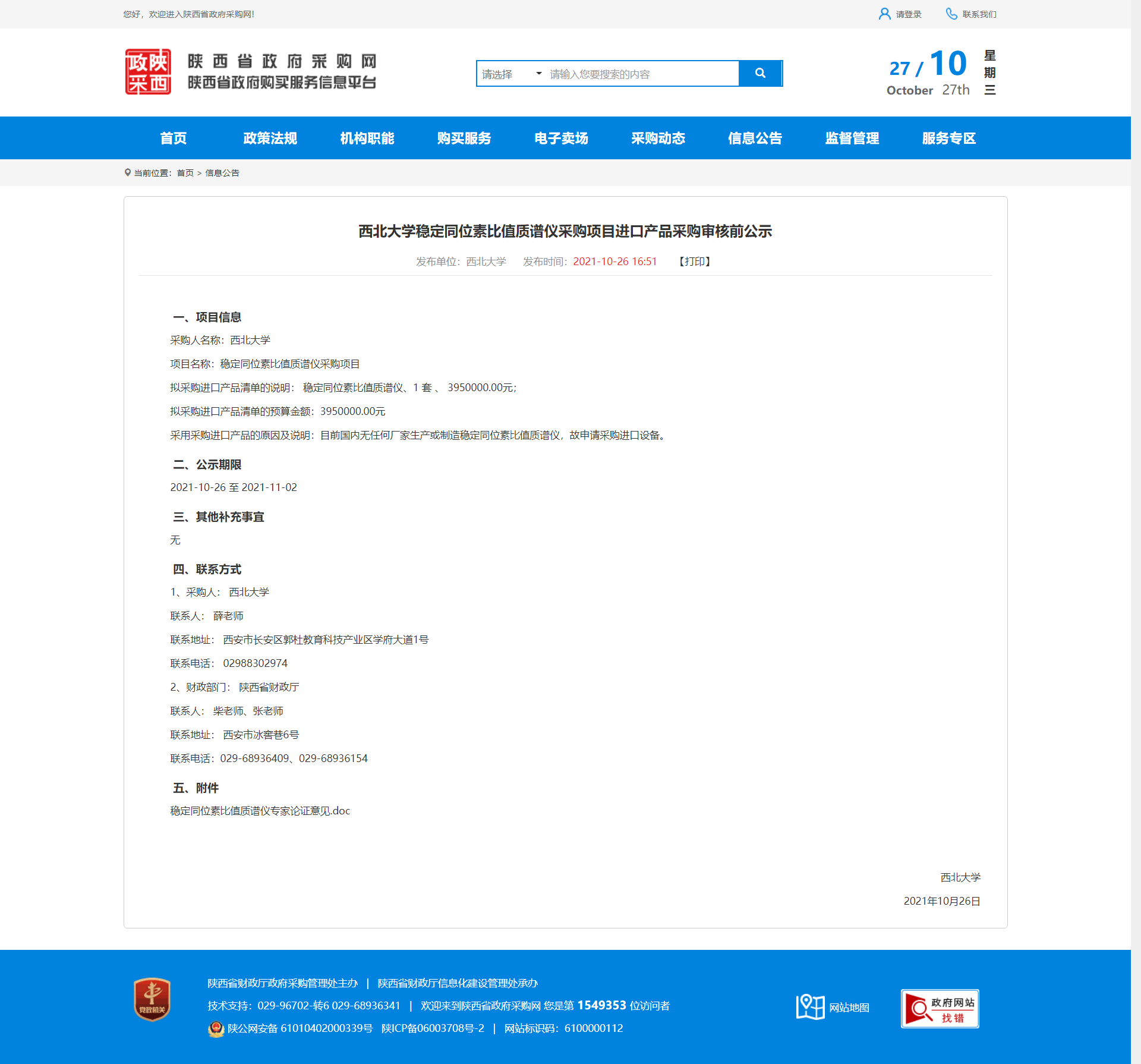 广发体育稳定同位素比值质谱仪采购项目进口产品采购审核前公示 作者: 编辑:薛利娟 时间:2021-10-27 原公告地址:http://www.ccgp-shaanxi.gov.cn/notice/noticeDetail.do?noticeguid=8a85be317c20d707017cbbc8d6dd7269