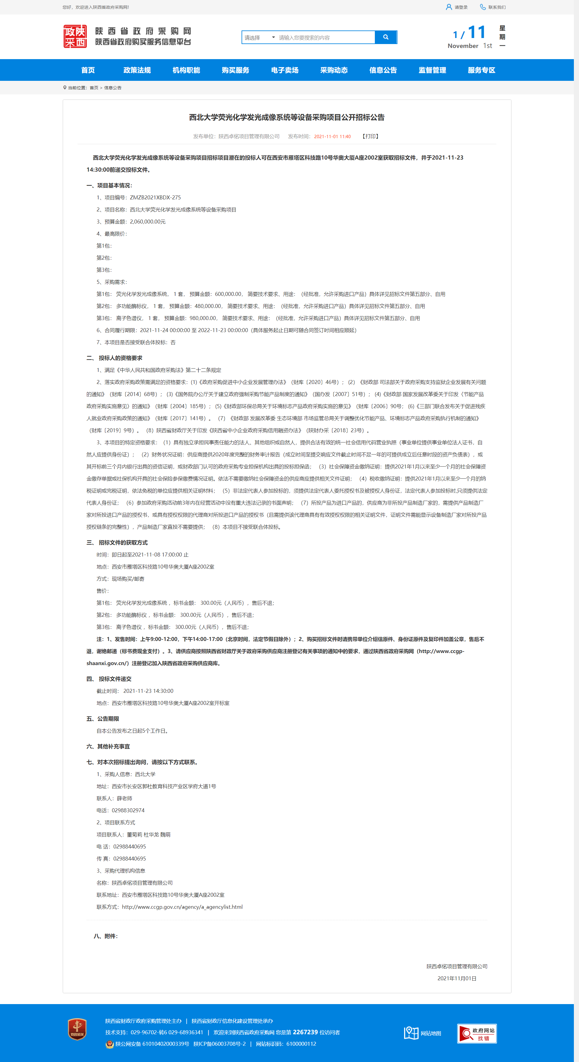 广发体育荧光化学发光成像系统等设备采购项目公开招标公告 作者: 编辑:薛利娟 时间:2021-11-01 原公告地址:http://www.ccgp-shaanxi.gov.cn/notice/noticeDetail.do?noticeguid=8a85be317cc6a275017cd96566c63fa5