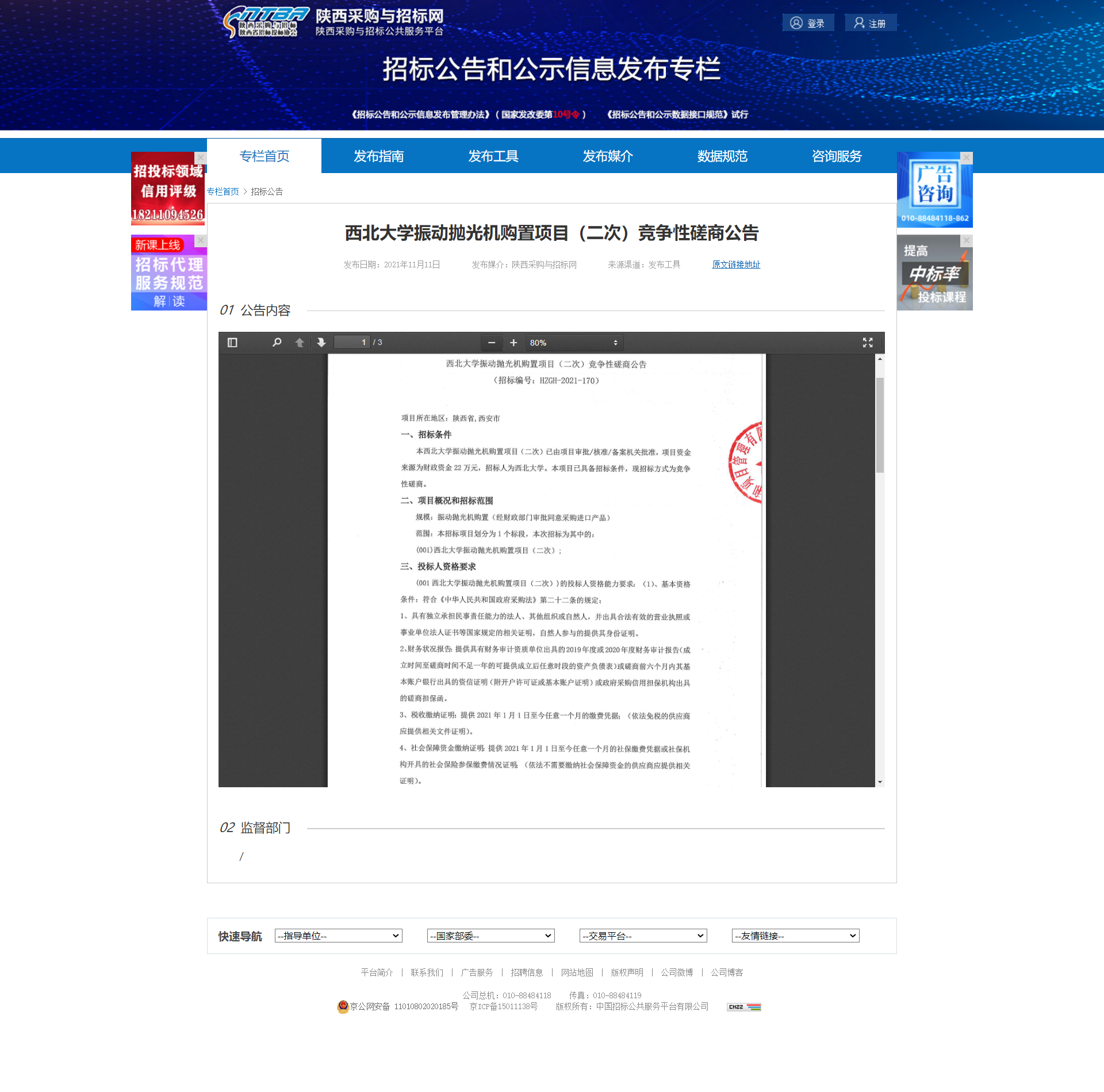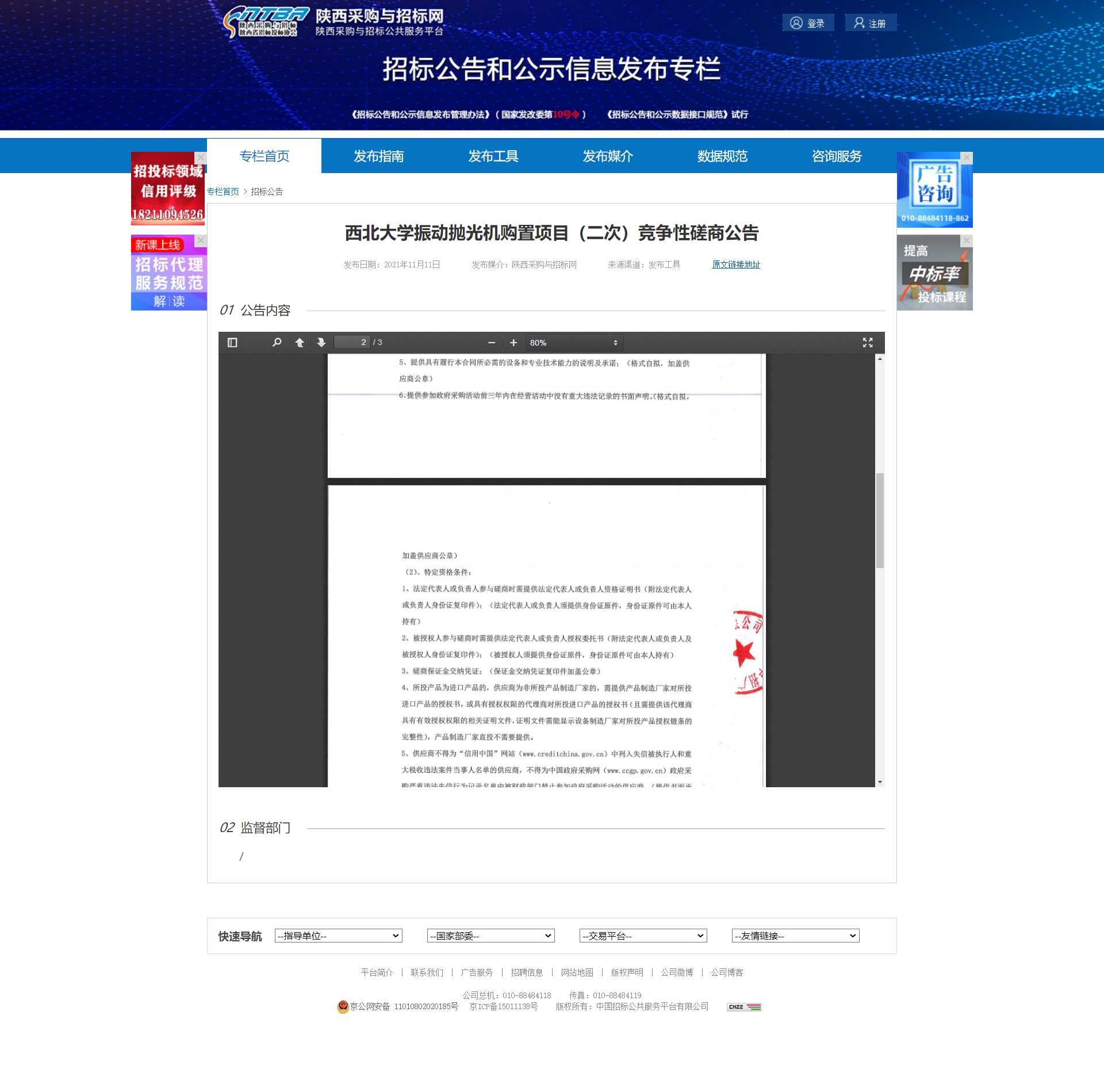 广发体育振动抛光机购置项目(二次)竞争性磋商公告 作者: 编辑:薛利娟 时间:2021-11-11 原公告网址:http://bulletin.sntba.com/biddingBulletin/2021-11-11/363026.html