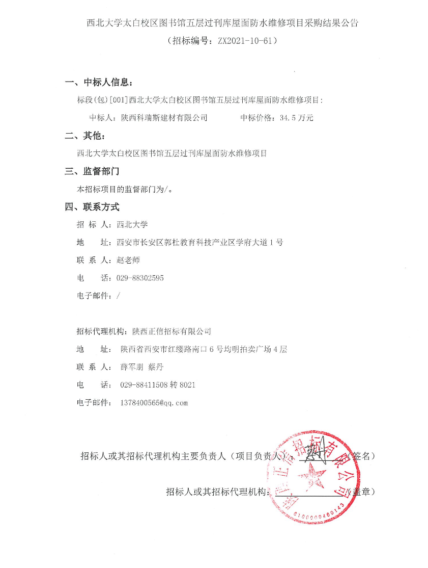 广发体育太白校区图书馆五层过刊库屋面防水维修项目采购结果公告