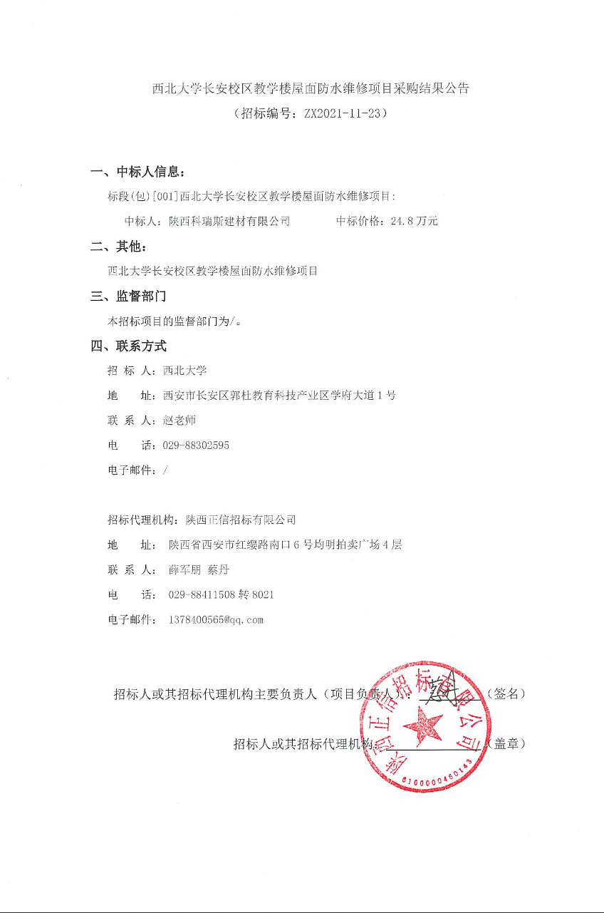 广发体育长安校区教学楼屋面防水维修项目采购结果公告