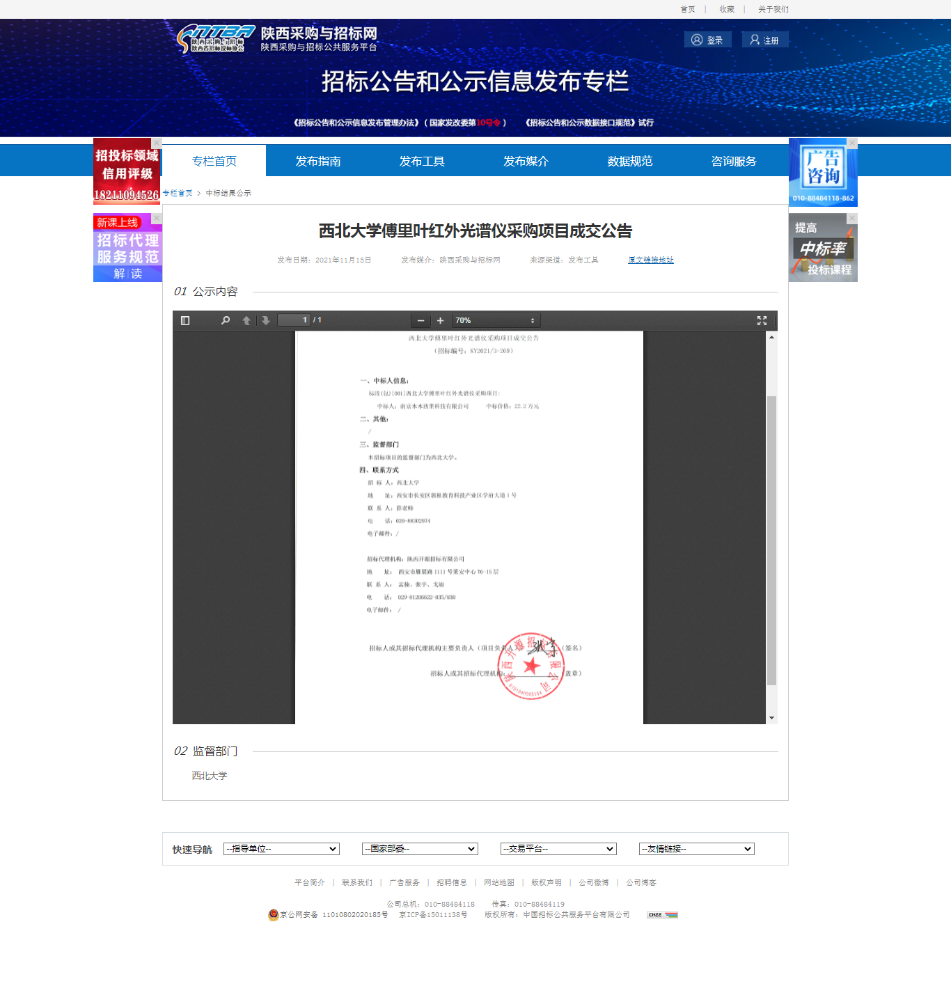 广发体育傅里叶红外光谱仪采购项目成交公告 作者: 编辑:薛利娟 时间:2021-11-15 原公告网址:http://bulletin.sntba.com/resultBulletin/2021-11-15/363971.html