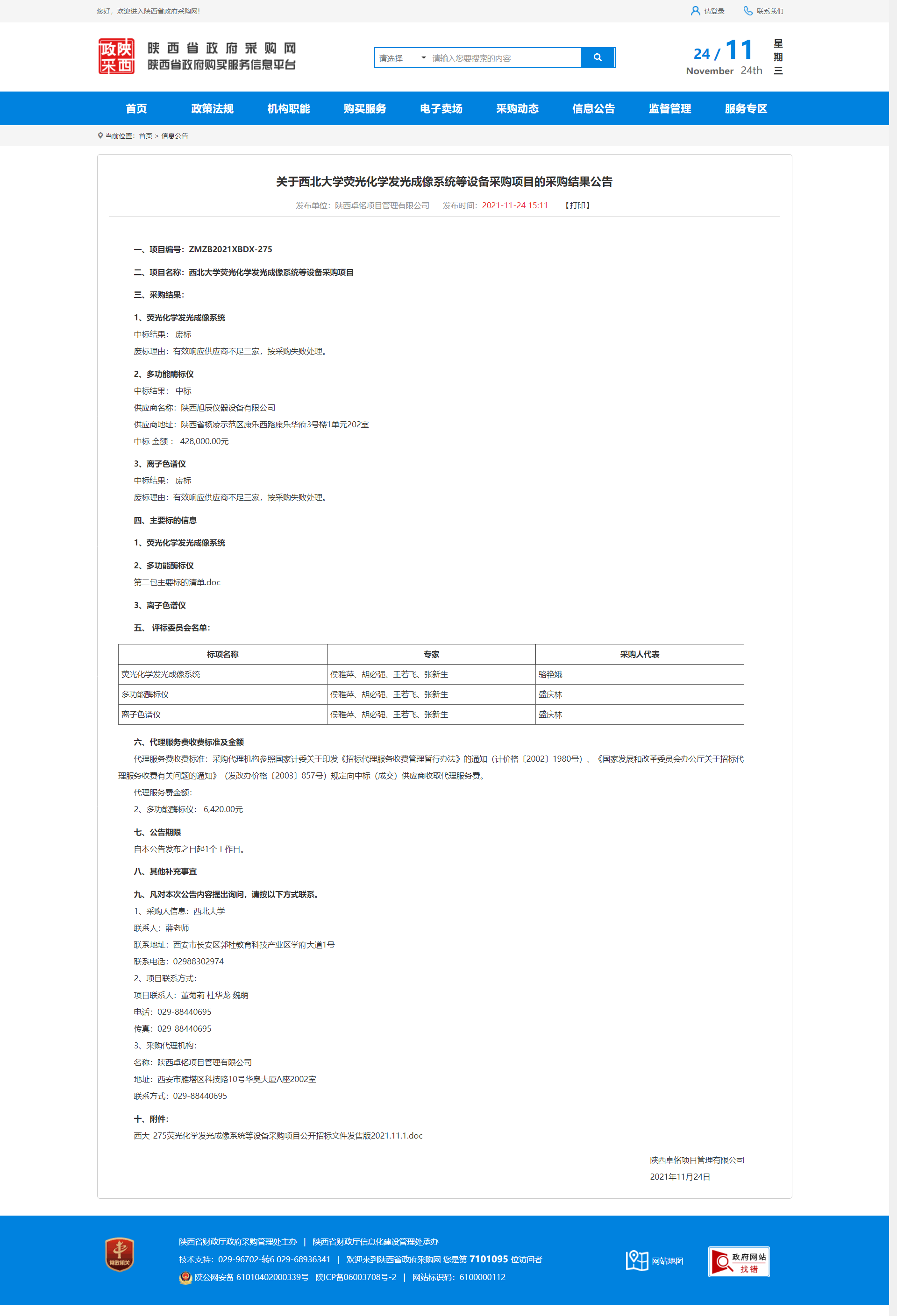 关于广发体育荧光化学发光成像系统等设备采购项目的采购结果公告 作者: 编辑:薛利娟 时间:2021-11-24 原公告网址:http://www.ccgp-shaanxi.gov.cn/notice/noticeDetail.do?noticeguid=8a85be347d2d6f8d017d50c64ee42710